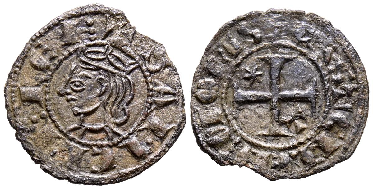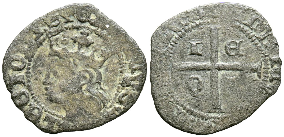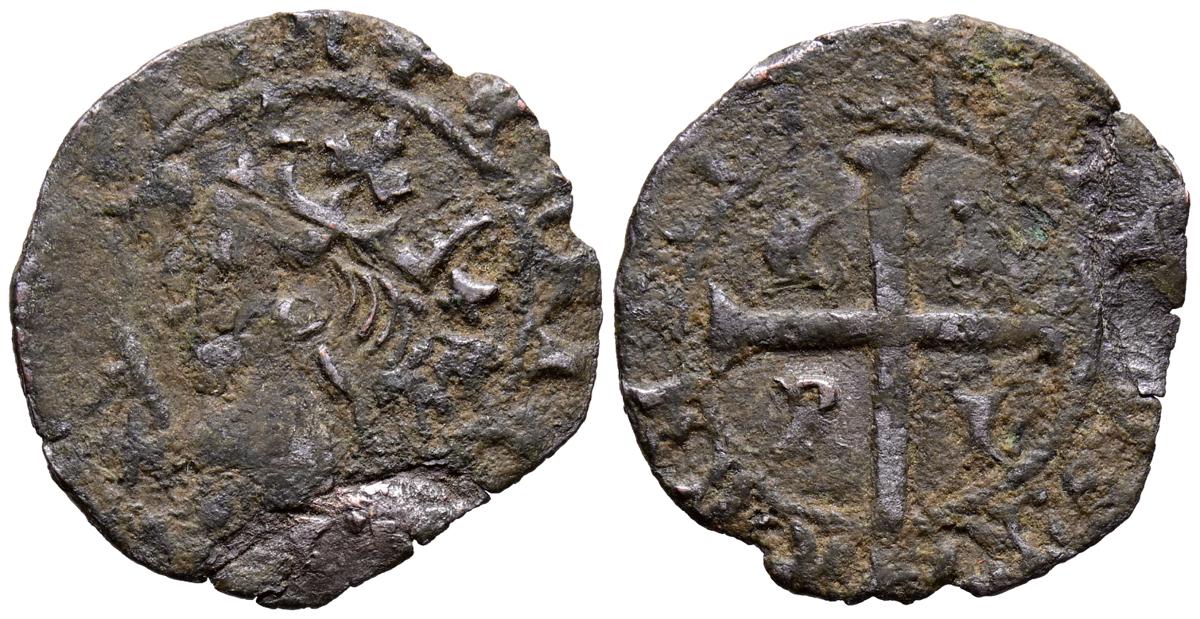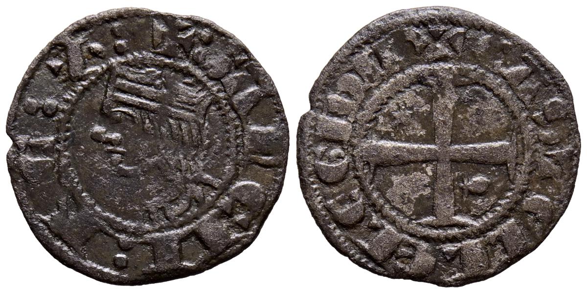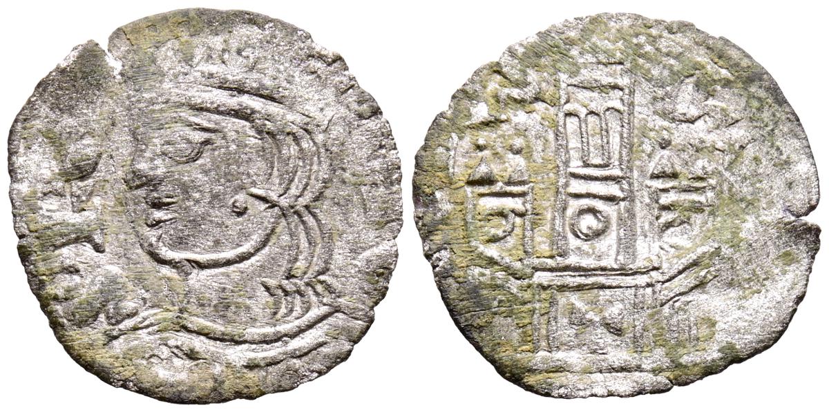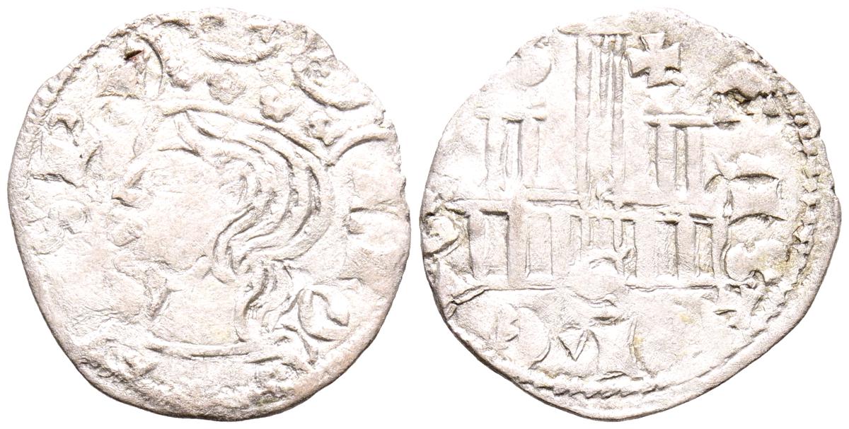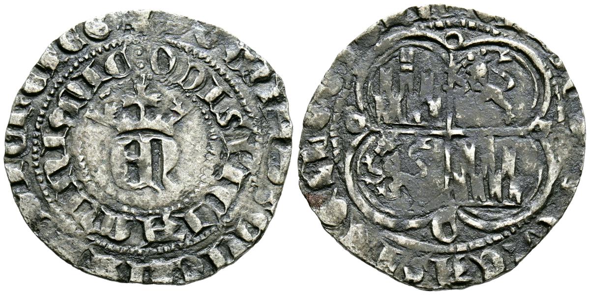 ENRIQUE II (1369-1379). Seisén. (Ae. 1,42g/22mm). Burgos. (Imperatrix E2:7.4; FAB-590, como Enrique III). Anv: Castillo, debajo B, todo dentro de gráfila circular, alrededor leyenda: ENRICVS REX CASTELLE. Rev: León rampante a izquierda, entre las patas las inicuales: BRV, todo dentro de gráfila circular, alrededor leyenda: ENRICVS REX LEGIONIS. MBC+. Escasa.