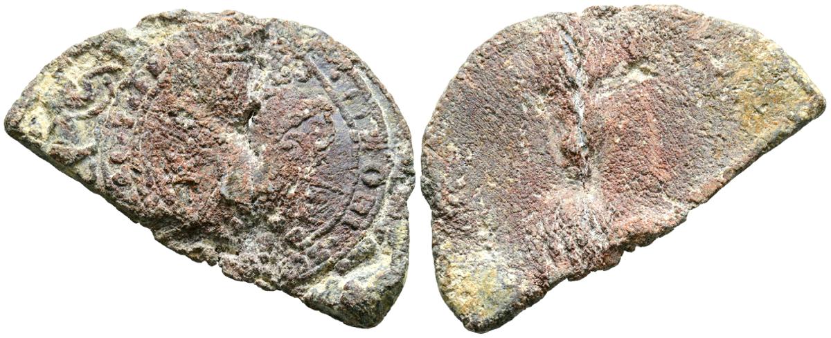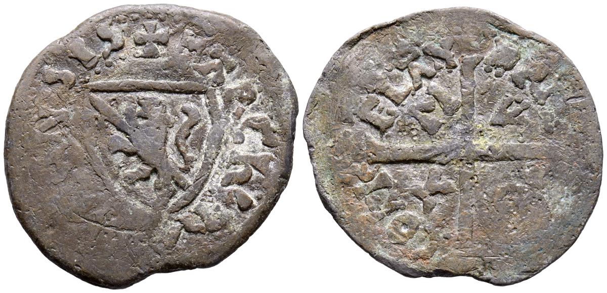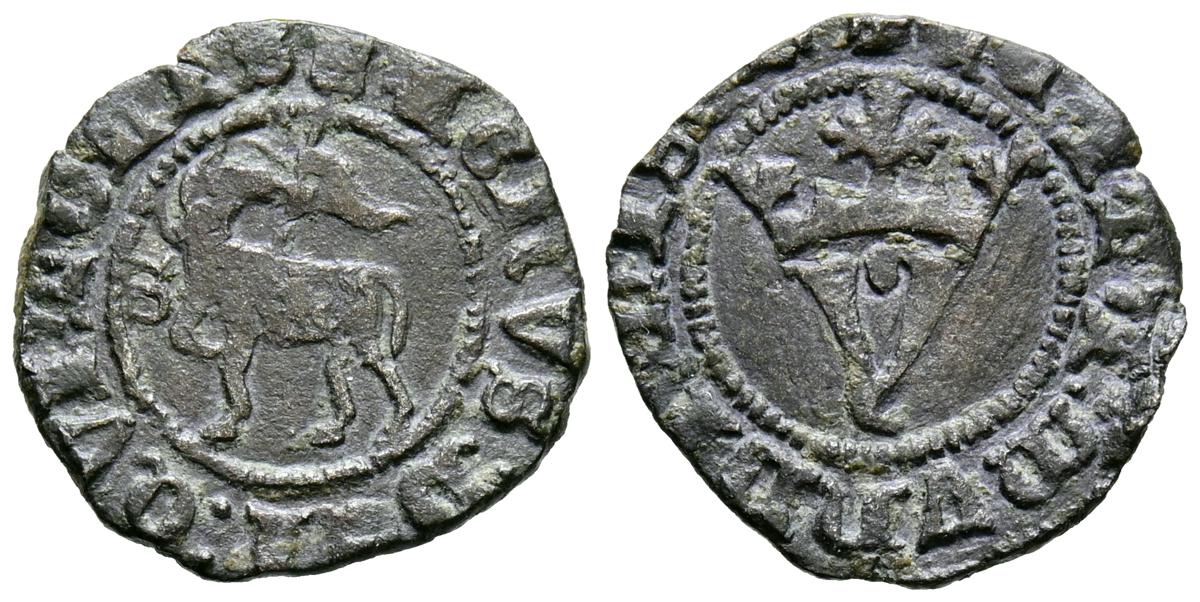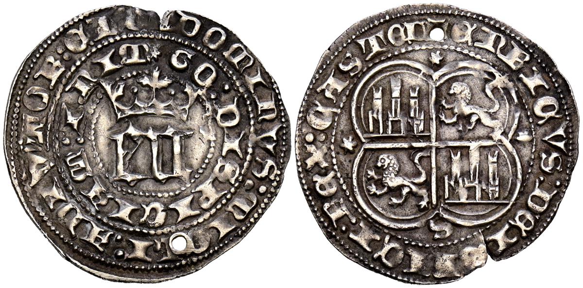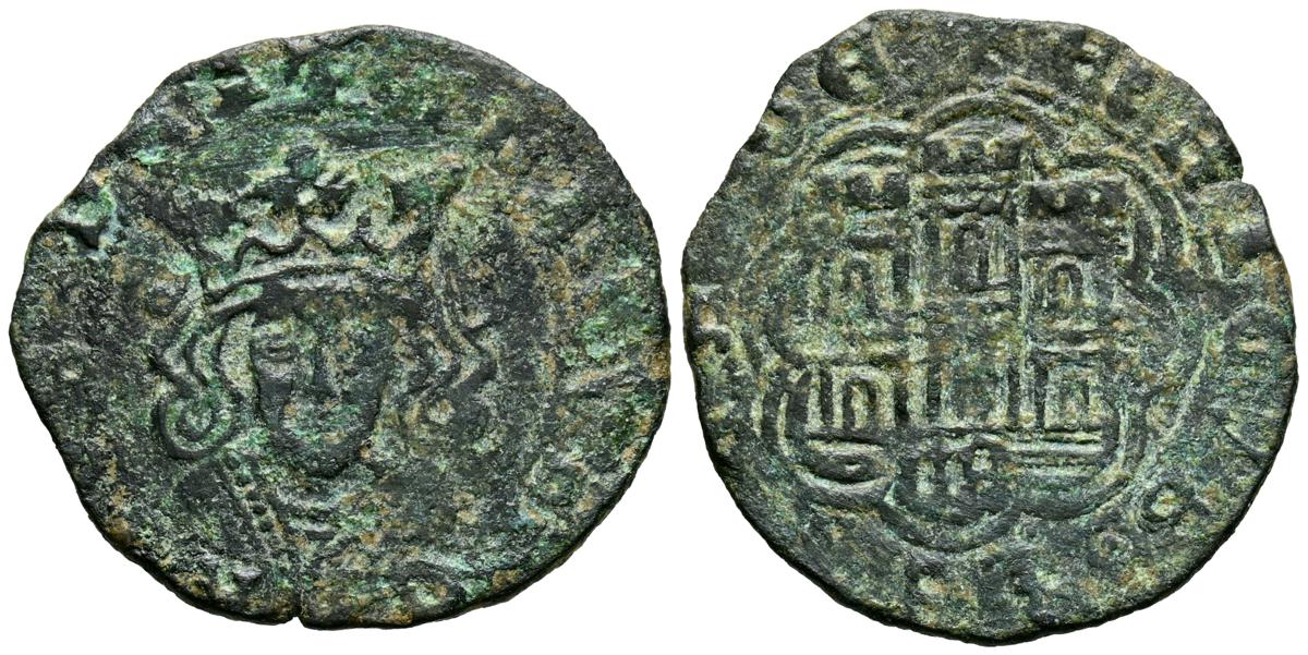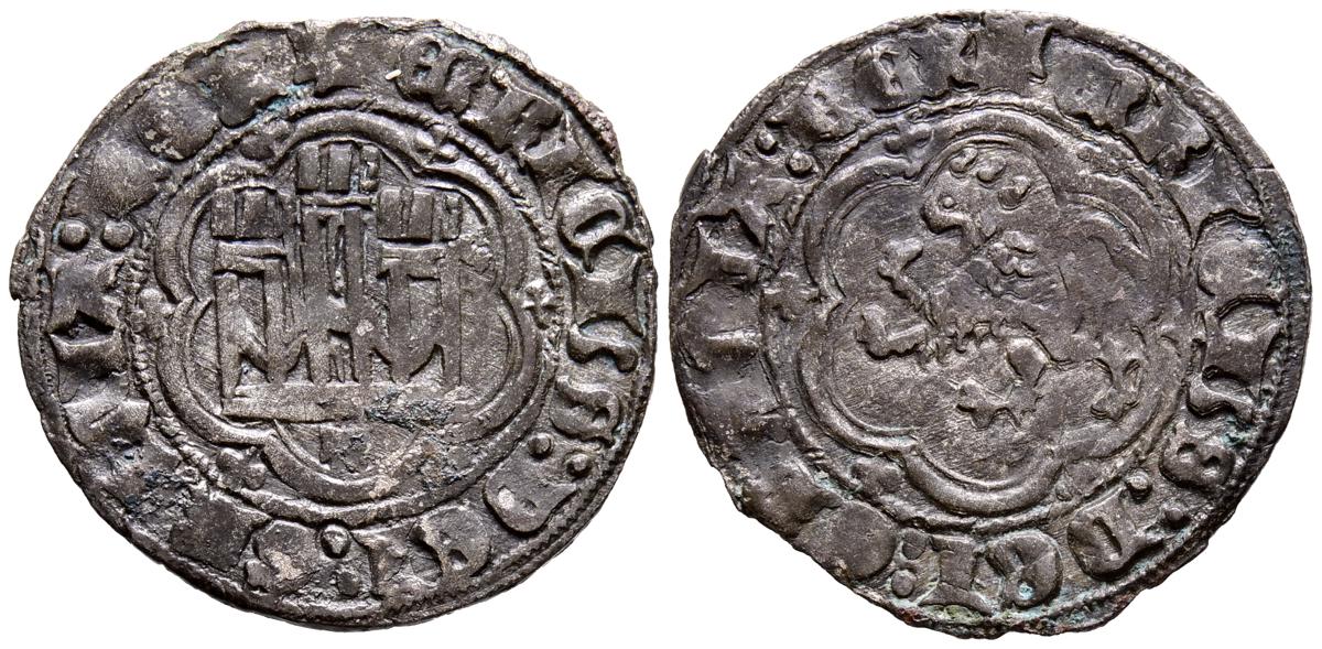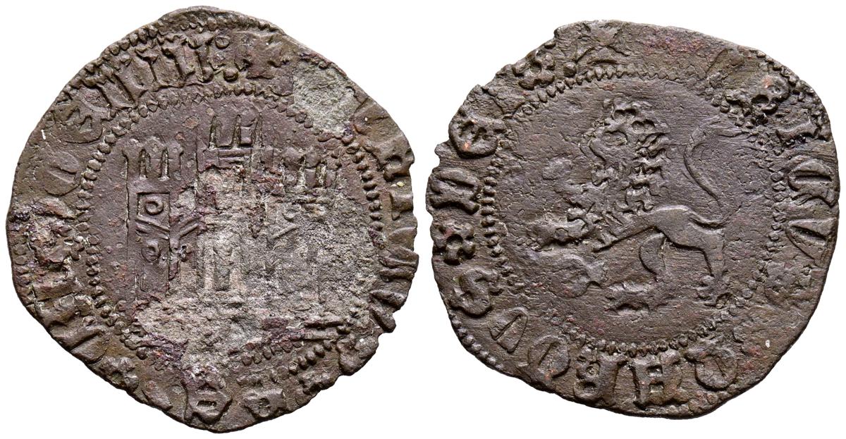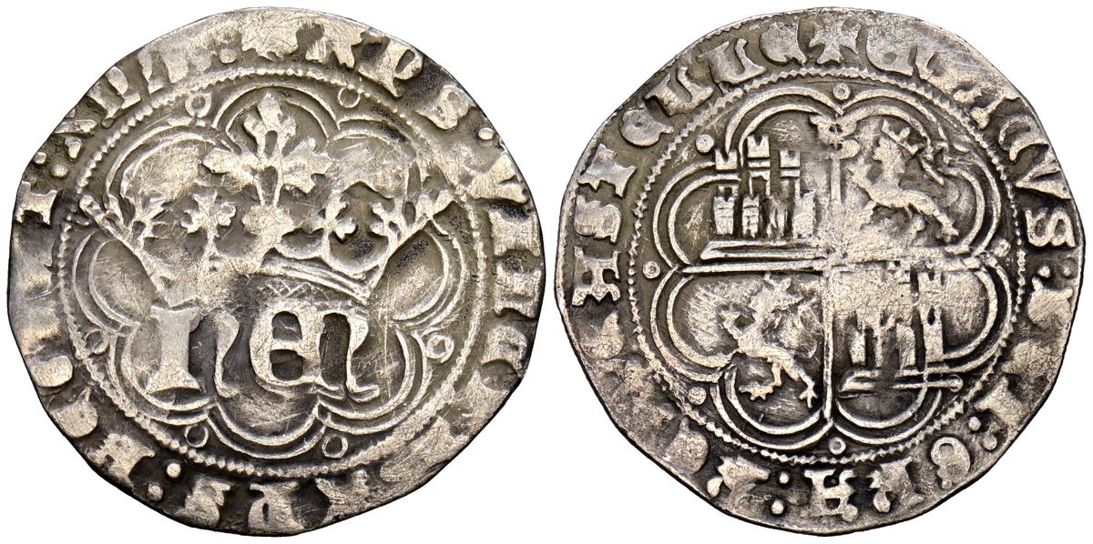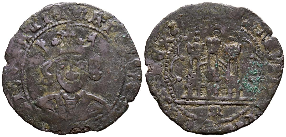 ENRIQUE IV (1454-1474). 1/2 Cuartillo falsario. (Ve. 1,50g/21mm). Sevilla. (Similar a Imperatrix E4:15.39; FAB-780.1). Anv: Busto coronado de Enrique IV de frente dentro de gráfila circular, alrededor leyenda: ENRICVS DEI GRACIA. Rev: Castillo, debajo: S, todo dentro a una doble gráfila circular, alrededor leyenda: ENRICVS CARTVS REX. MBC. Interesante y raro ejemplar que presenta una doble técnica de realización, en la que observamos que, mientras la corona está en positivo, el resto del retrato del monarca está inciso.