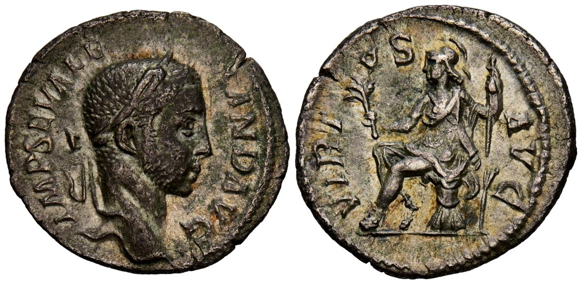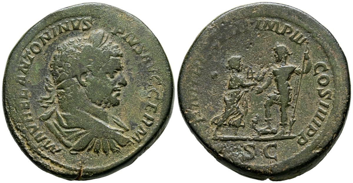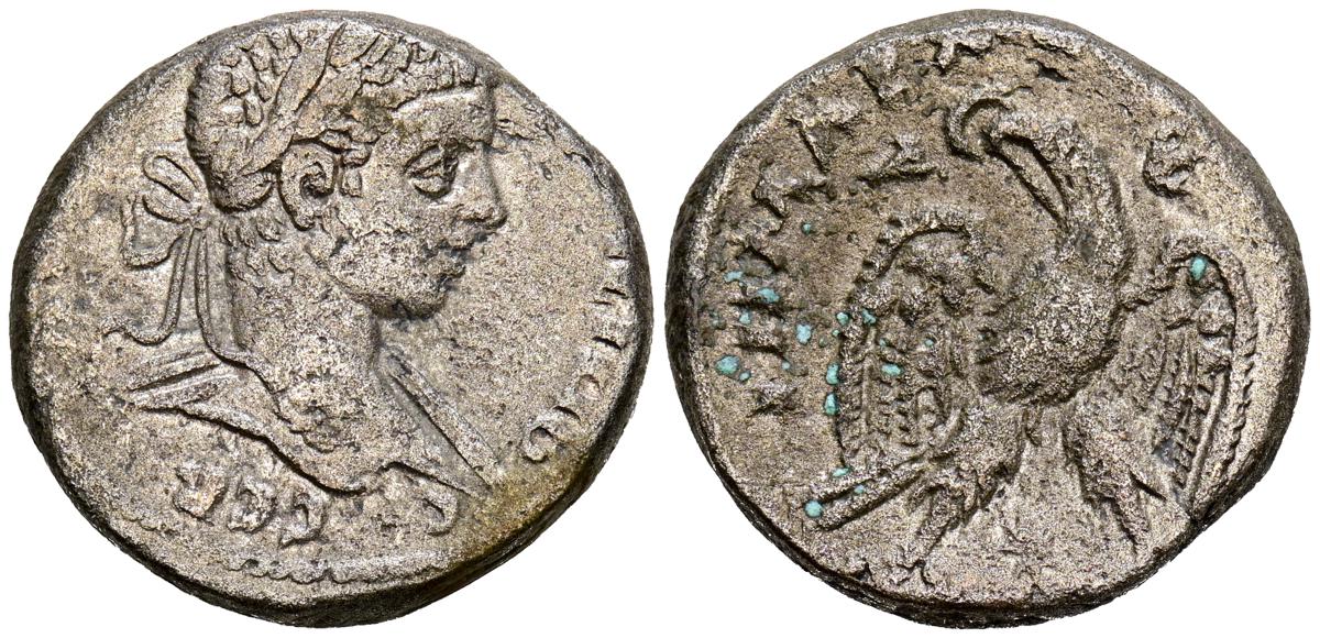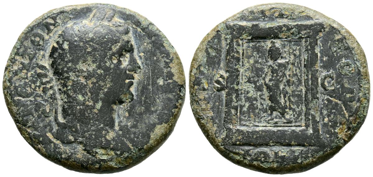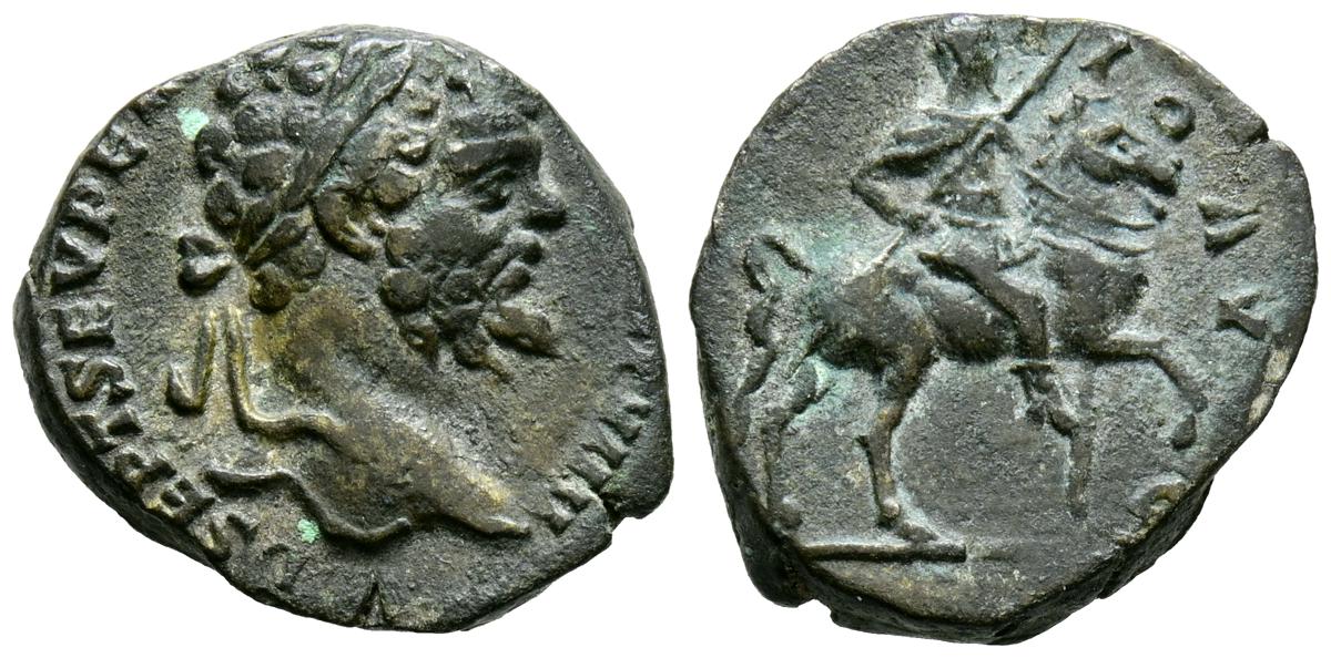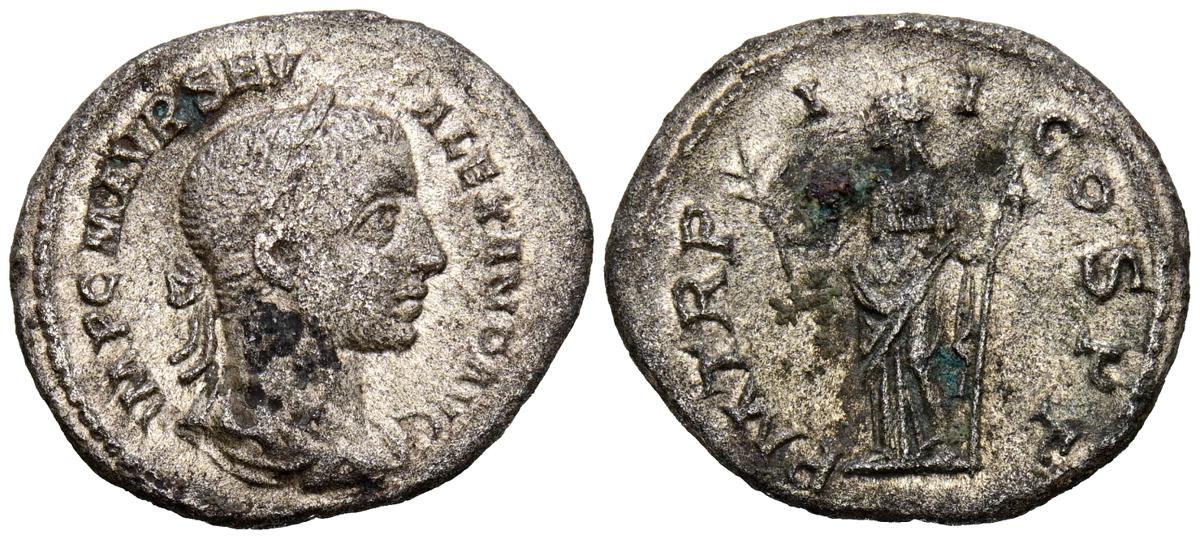 ALEJANDRO SEVERO. Octassarion. (Ae. 9,70g/25mm). 222-235 d.C. Asaria, Antioquía. (RPC 8086; McAlee 828). Anv: Cabeza laureada de Alejandro severo a derecha, alrededor leyenda: ΑΥΤΟ ΚΑΙϹ ΜΑΡ ΑΥΡ ϹЄ ΑΛЄΞΑΝΔΡ ϹЄΒ. Rev: Tyche sedente a la izquierda en la s rocas, sosteniendo la espiga de grano, a los pies, dios del río nadando a la izquierda, en campo: Δ-Є y S-C, alrededor leyenda: ΑΝΤΙΟXЄΩΝ ΜΗ Κ. MBC-.