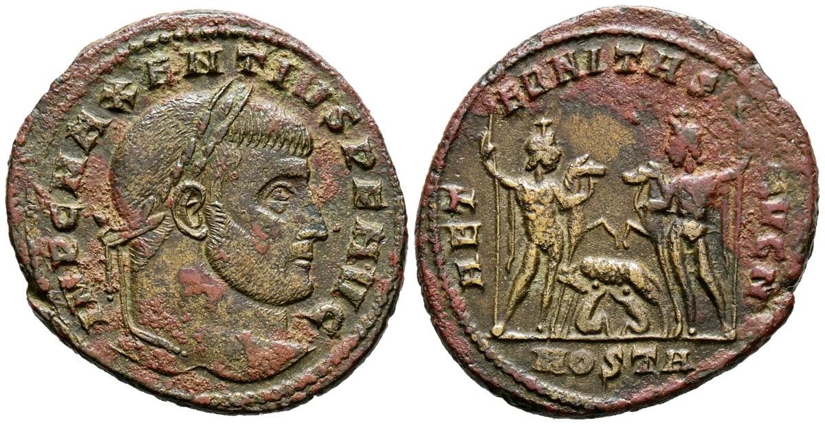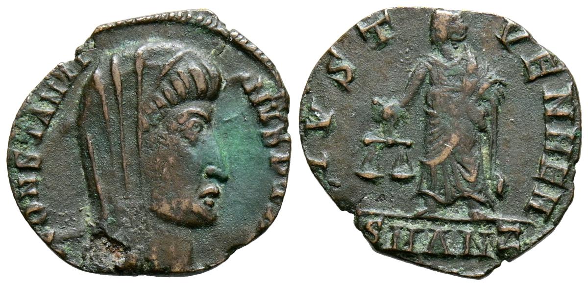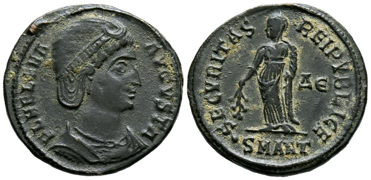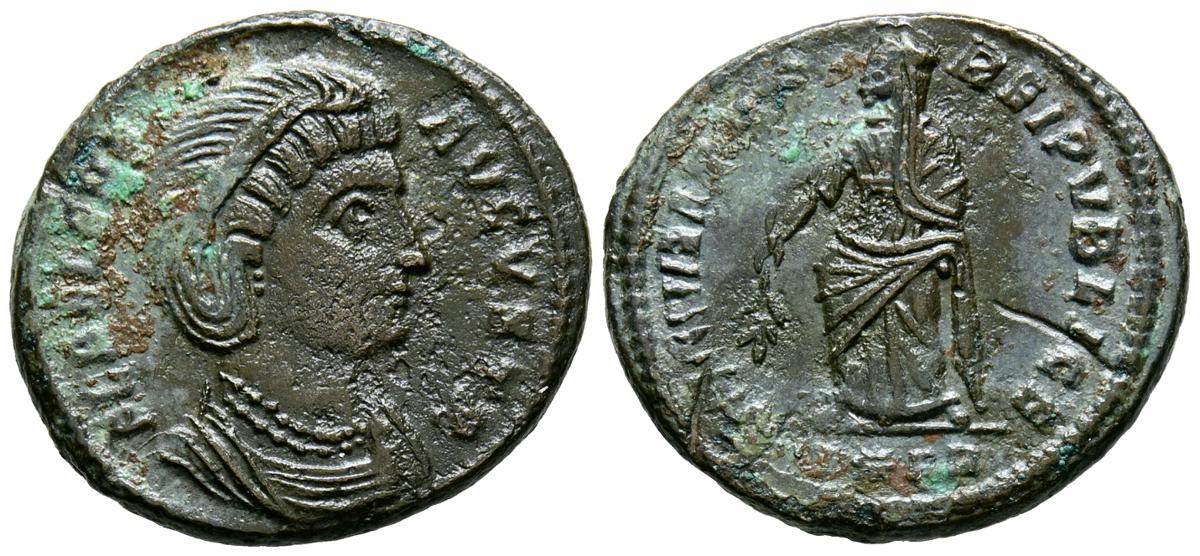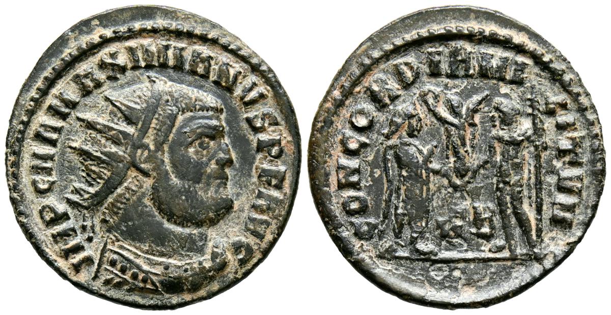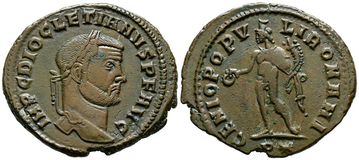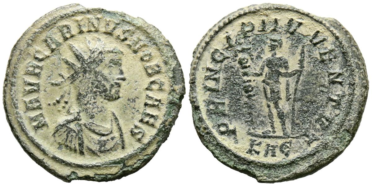 LICINIO I. Follis. (Ae. 2,93g/19mm). 321-324 d.C. Alejandría. (RIC 28). Anv: Busto radiado, drapeado y con coraza de Licinio I a derecha, alrededor leyenda: IMP C VAL LICIN LICINIVS P F AVG. Rev: Júpiter estante a izquierda portando Victoria con corona de laurel y cetro, detrás cautivo, delante águila con corona de laurel, en campo: X/IIr, en exergo: SMKA, alrededor leyenda: IOVI CONSERVATORI. MBC+.
