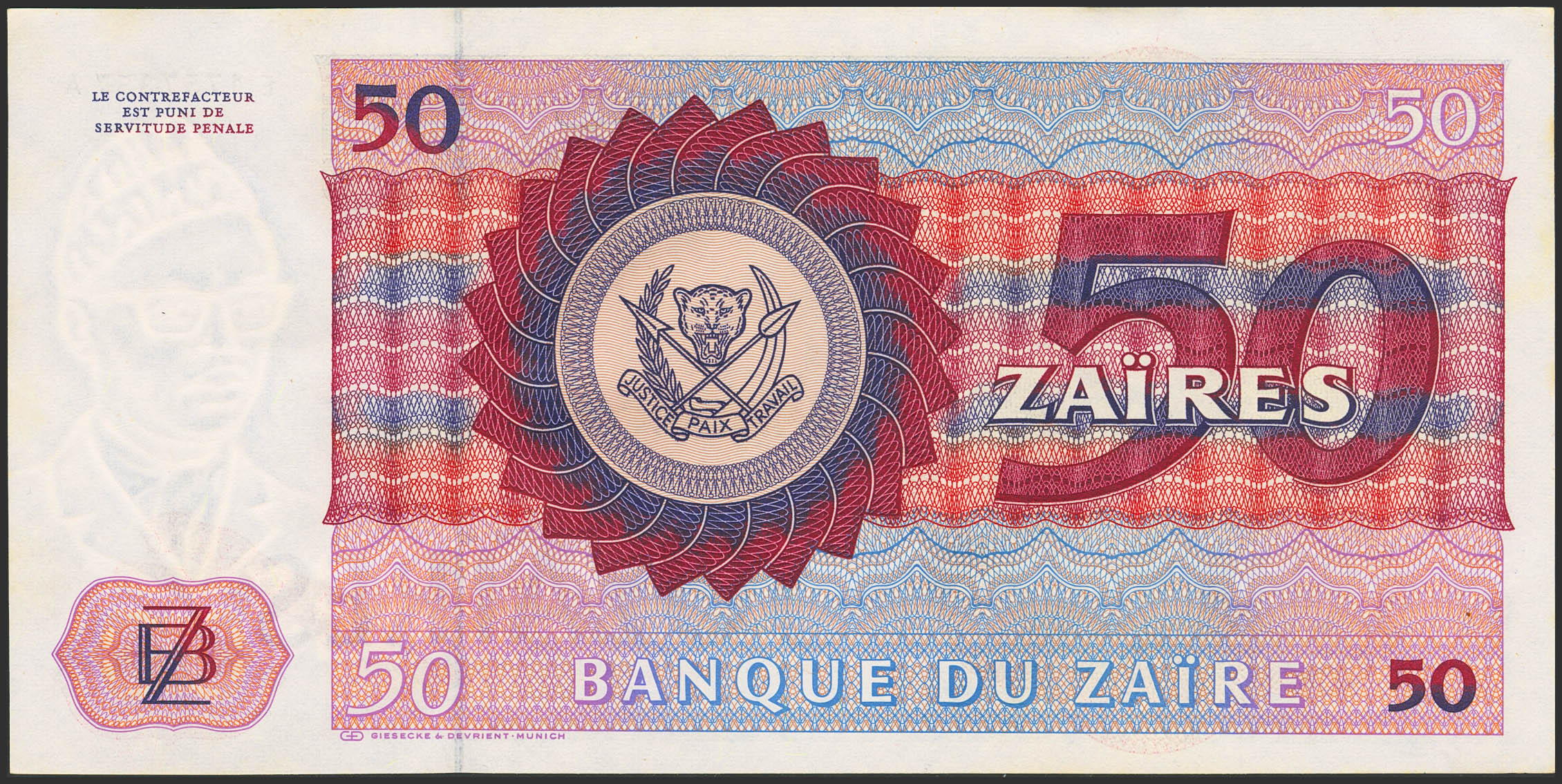ZAIRE. 50 Zaires. 4 February 1980. Banque du Zaire. (Pick: 25a). Less than Uncirculated.