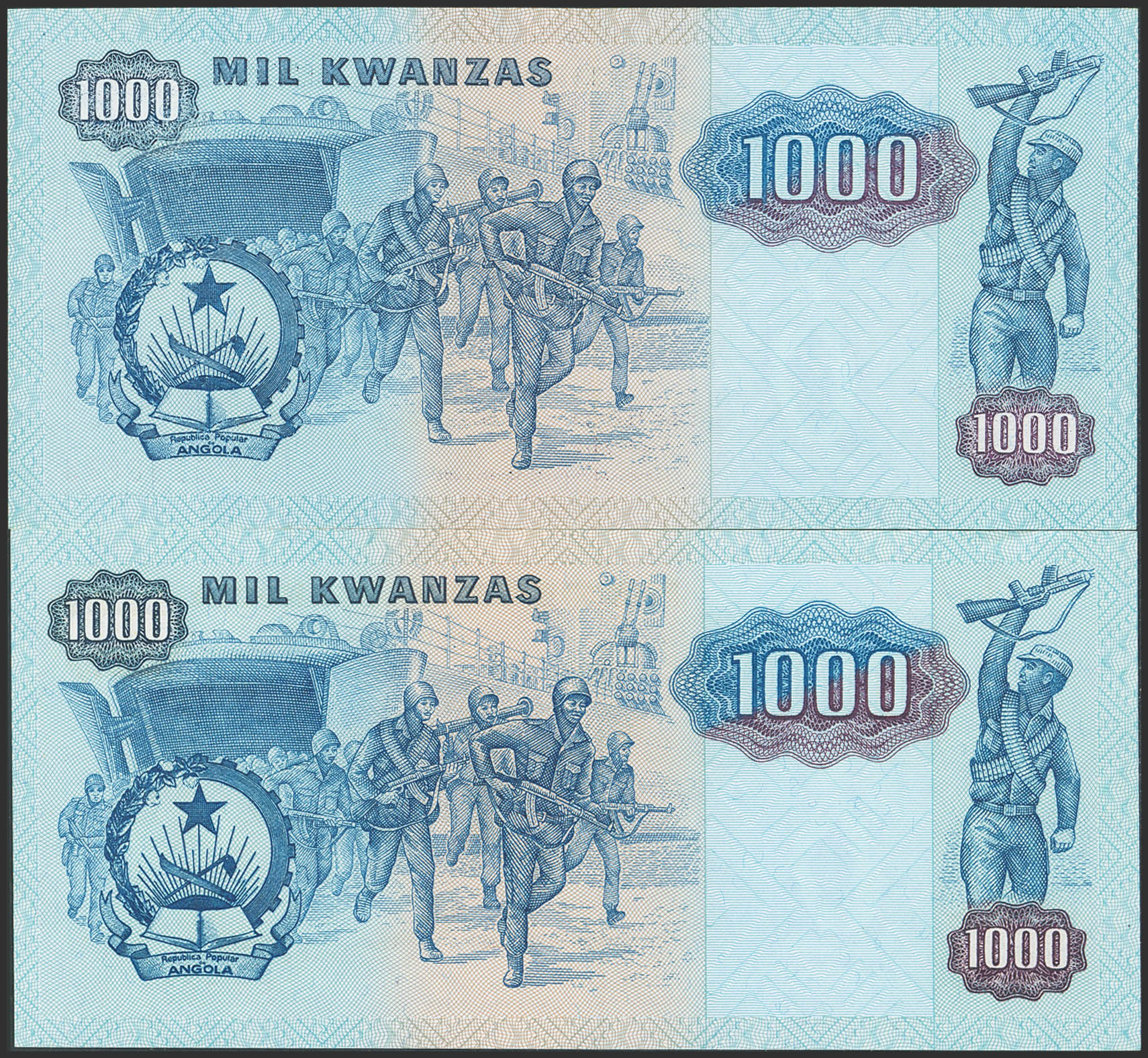ANGOLA. Lot of 2 notes of 1000 Kwanzas. 1984 and 1987. Banco Nacional. (Pick: 121a, 121b). Uncirculated.
