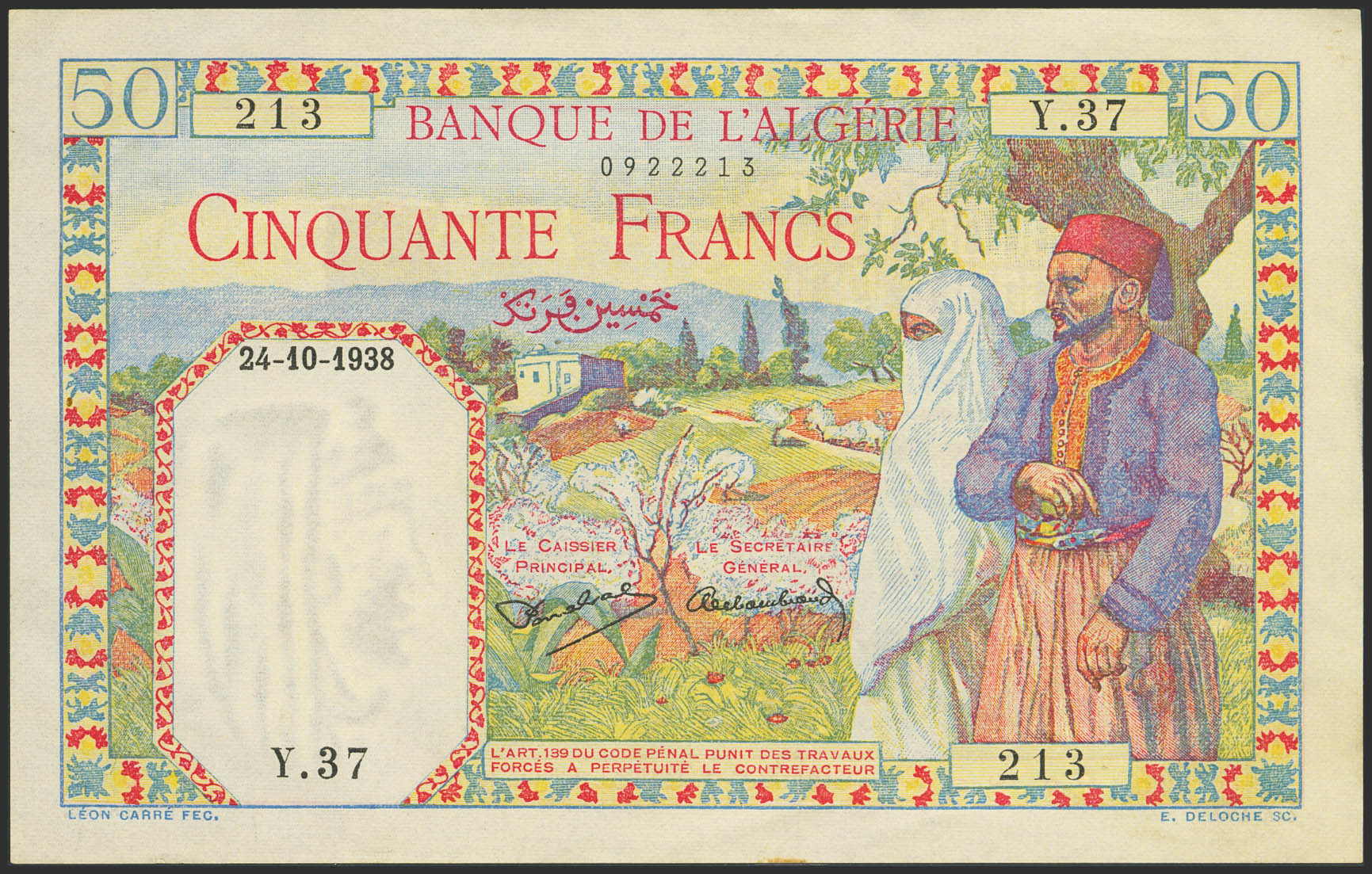 ALGERIA. 50 Francs. 24 October 1938. Banque de l'Algerie. (Pick: 84). More than Extremely Fine.