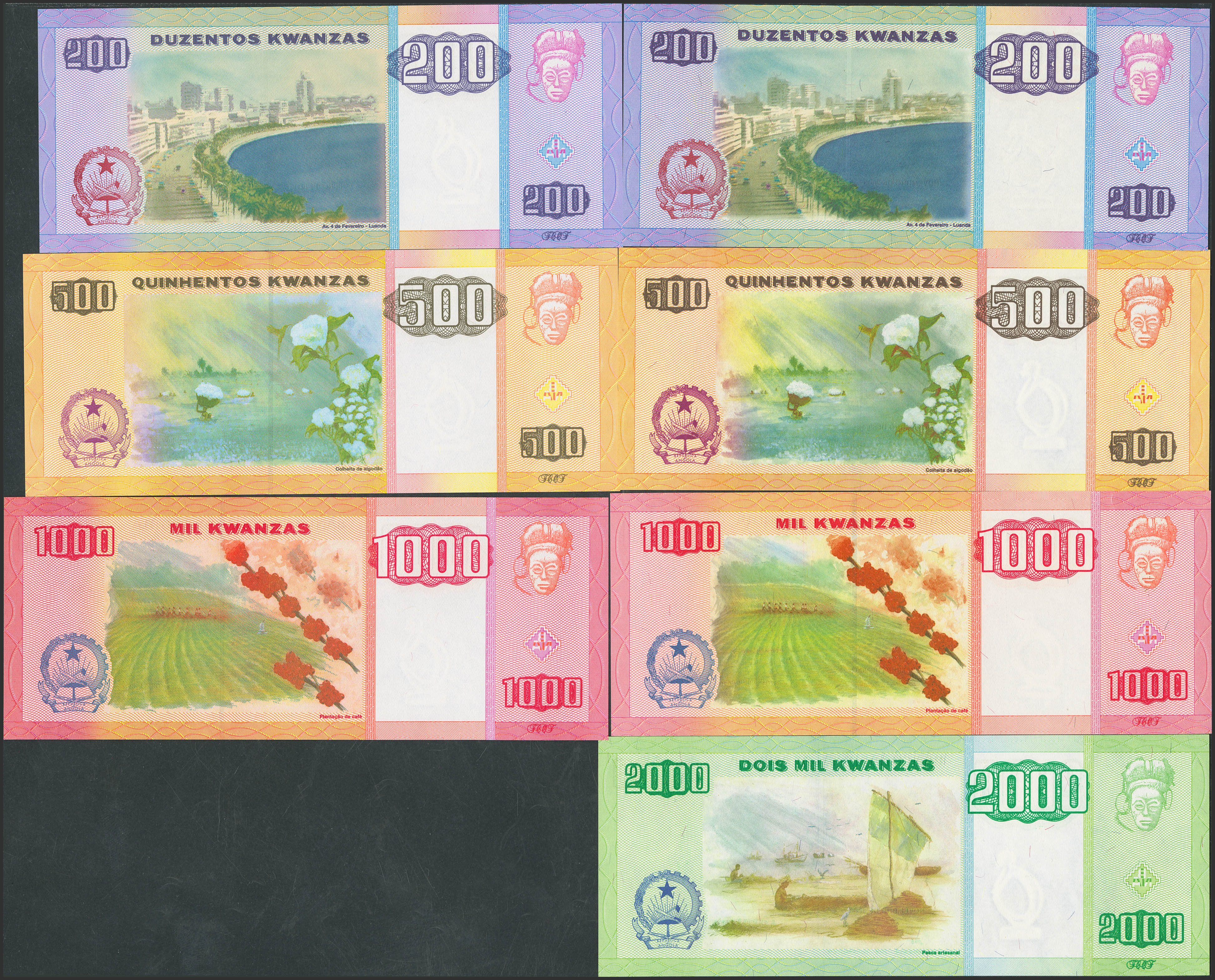 ANGOLA. Lot of 7 notes from 200 to 2000 Kwanzas. 2003 and 2011. Banco Nacional. (Pick: 148a, 148b, 149a, 149b, 150a, 150b, 151a). Uncirculated.