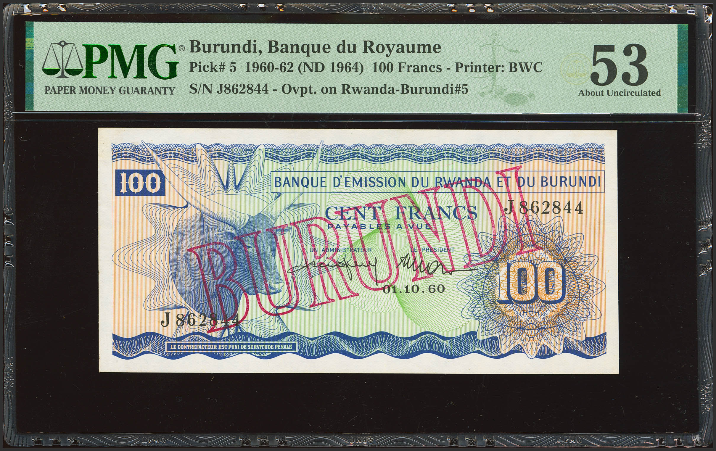 BURUNDI. 100 Francs. 1 October 1960. Banque d'Emission. (Pick: 5). PMG53.
