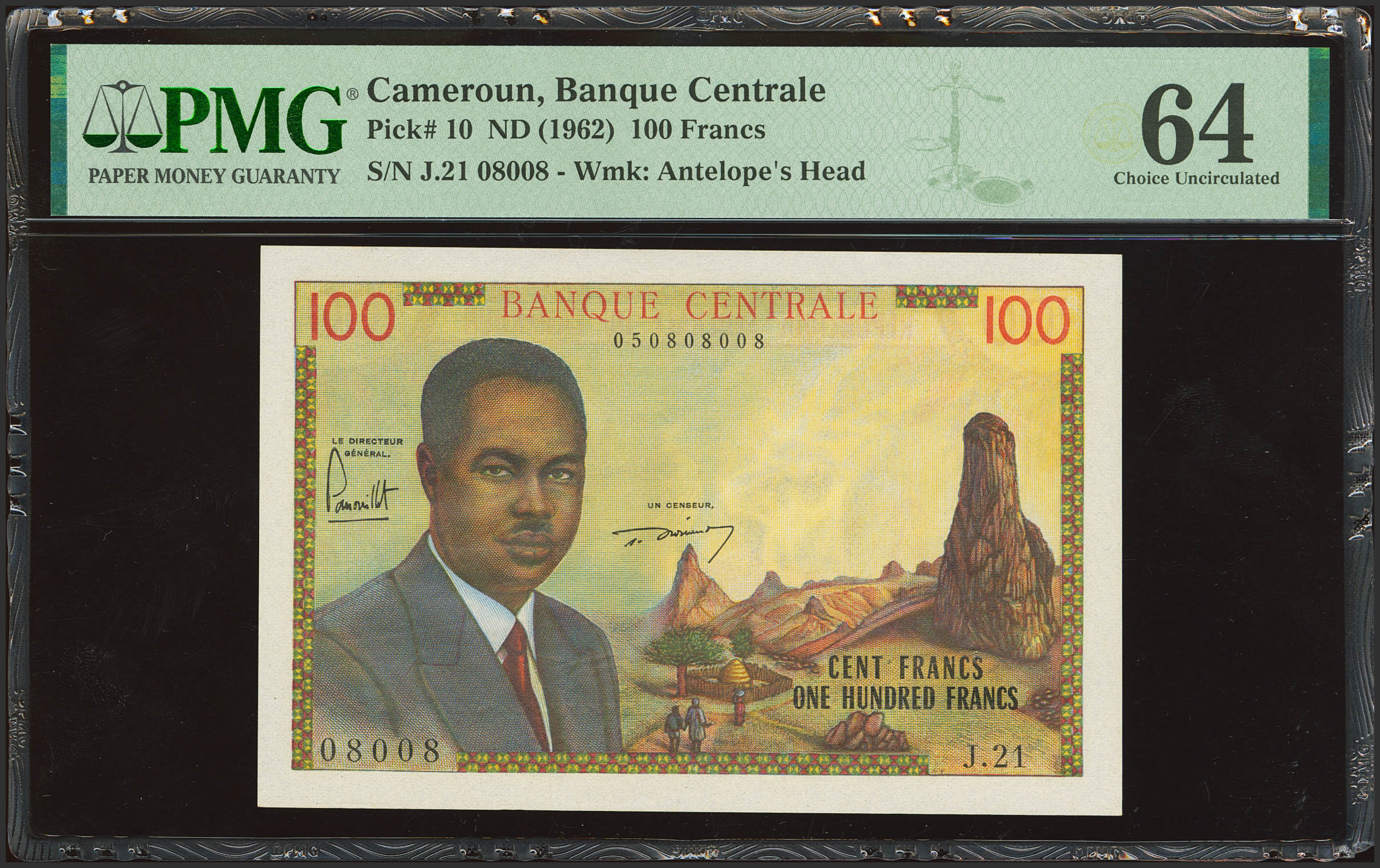 CAMEROON. 100 Francs. (1962ca). Banque Centrale. (Pick: 10). PMG64 (staple holes).