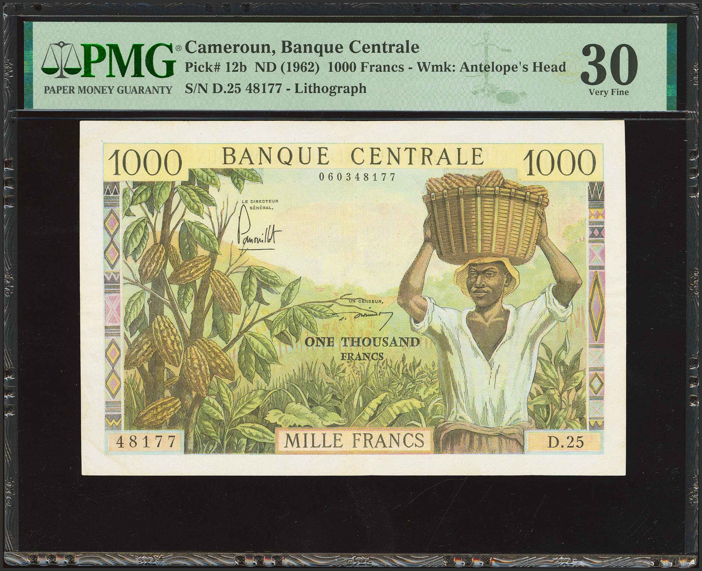 CAMEROON. 1000 Francs. (1962ca). Banque Centrale. (Pick: 12b). PMG30.