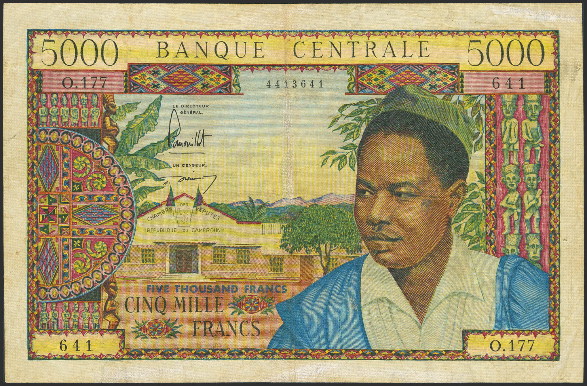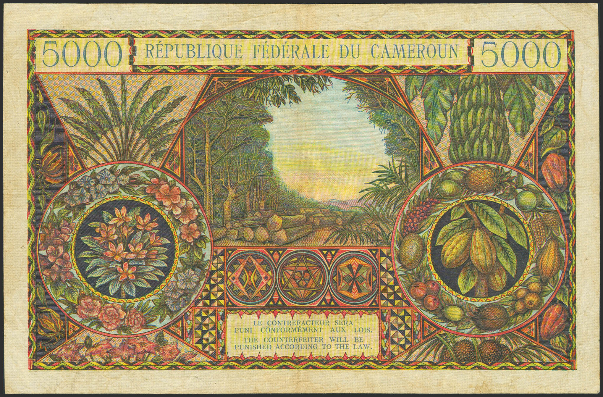 CAMEROON. 5000 Francs. (1962ca). Banque Centrale. (Pick: 13). Pinholes. Fine.