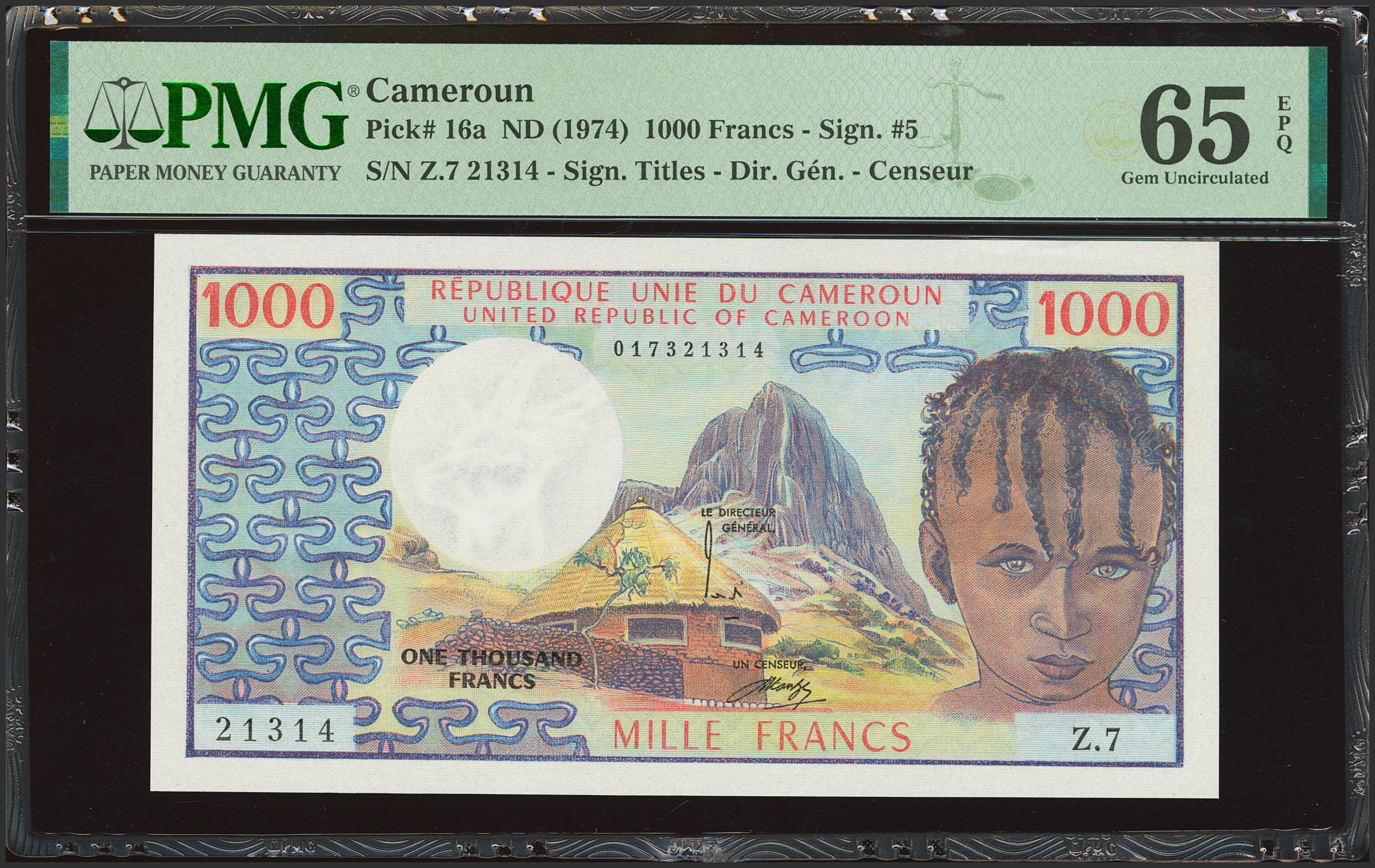 CAMEROON. 1000 Francs. (1974ca). Banque des Etats de l'Afrique Centrale. (Pick: 16a). PMG65EPQ.