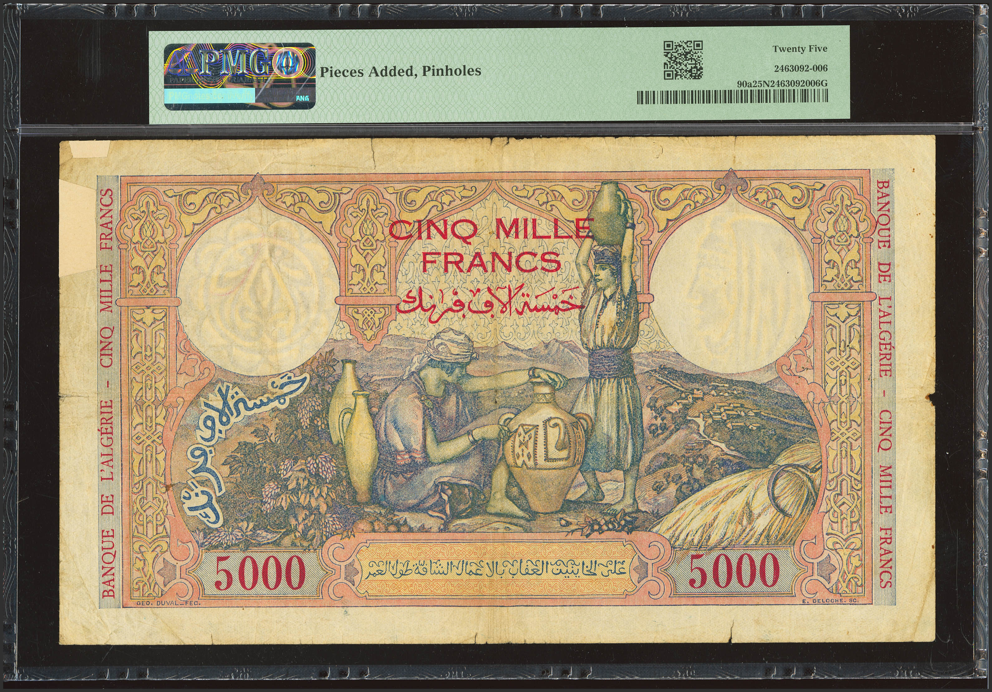 ALGERIA. 5000 Francs. 12 January 1942. Banque de l'Algerie. (Pick: 90a). PMG20NET (pieces added, pinholes).