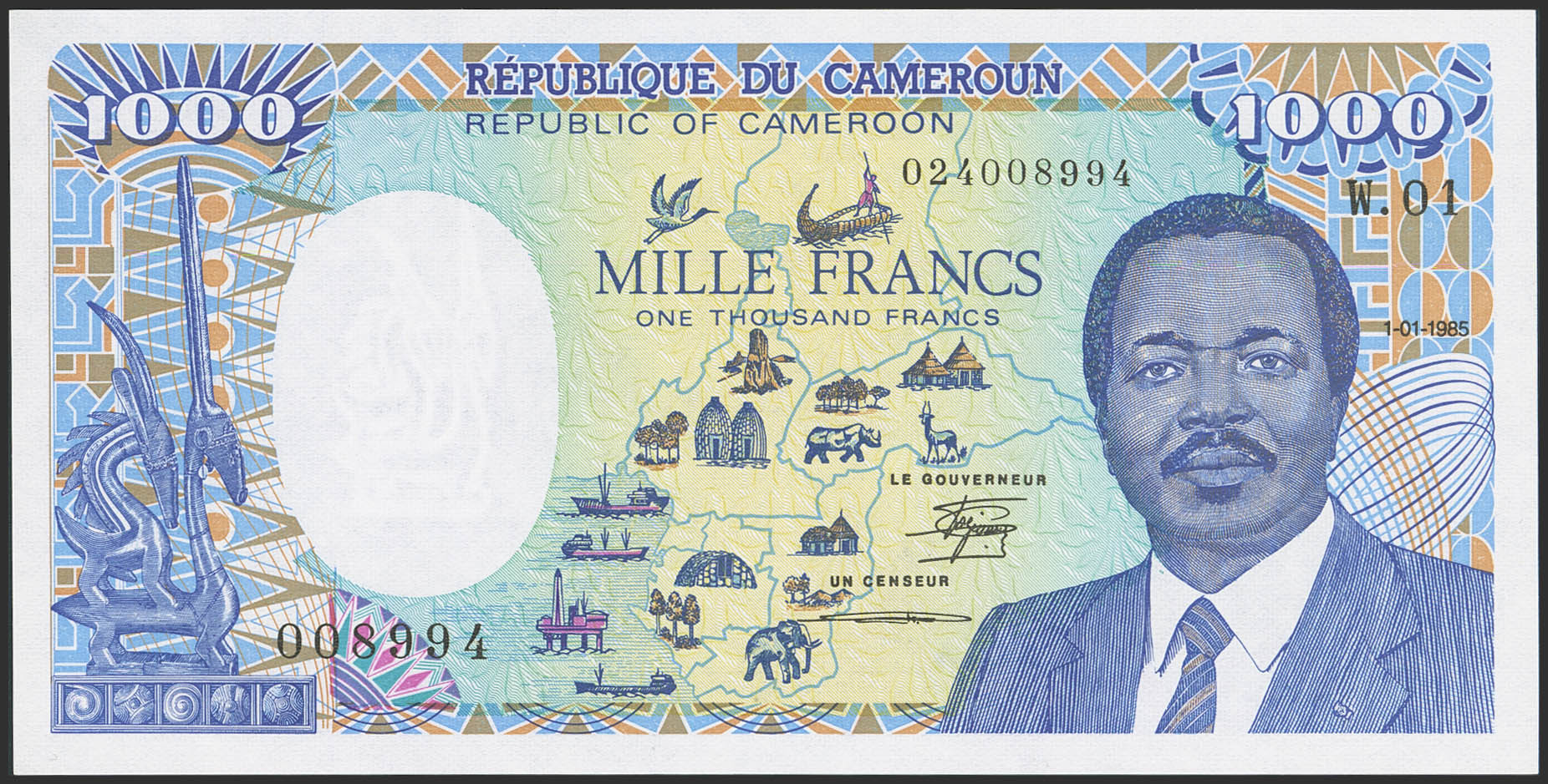 CAMEROON. 1000 Francs. 1 January 1985. Banque des Etats de l'Afrique Centrale. Republique du Cameroun. (Pick: 25). Almost Uncirculated.