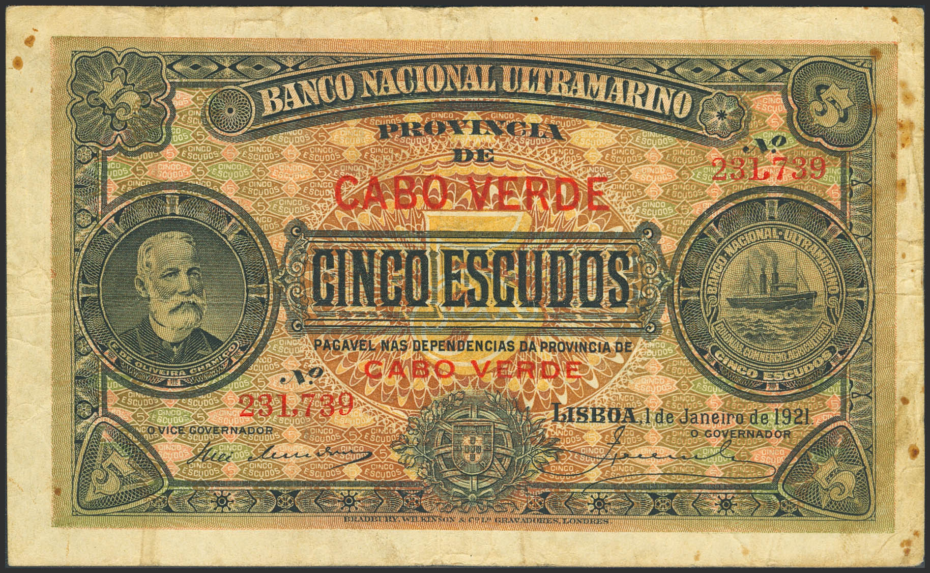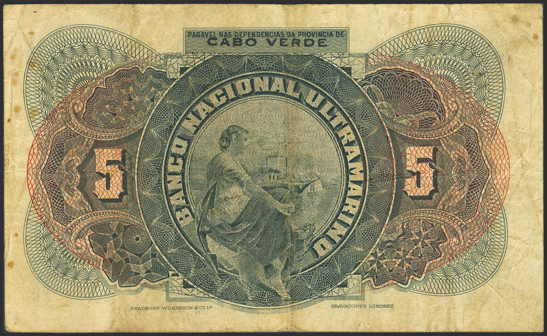 CAPE VERDE. 5 Escudos. 1 January 1921. Banco Nacional. (Pick: 34). More than Fine.
