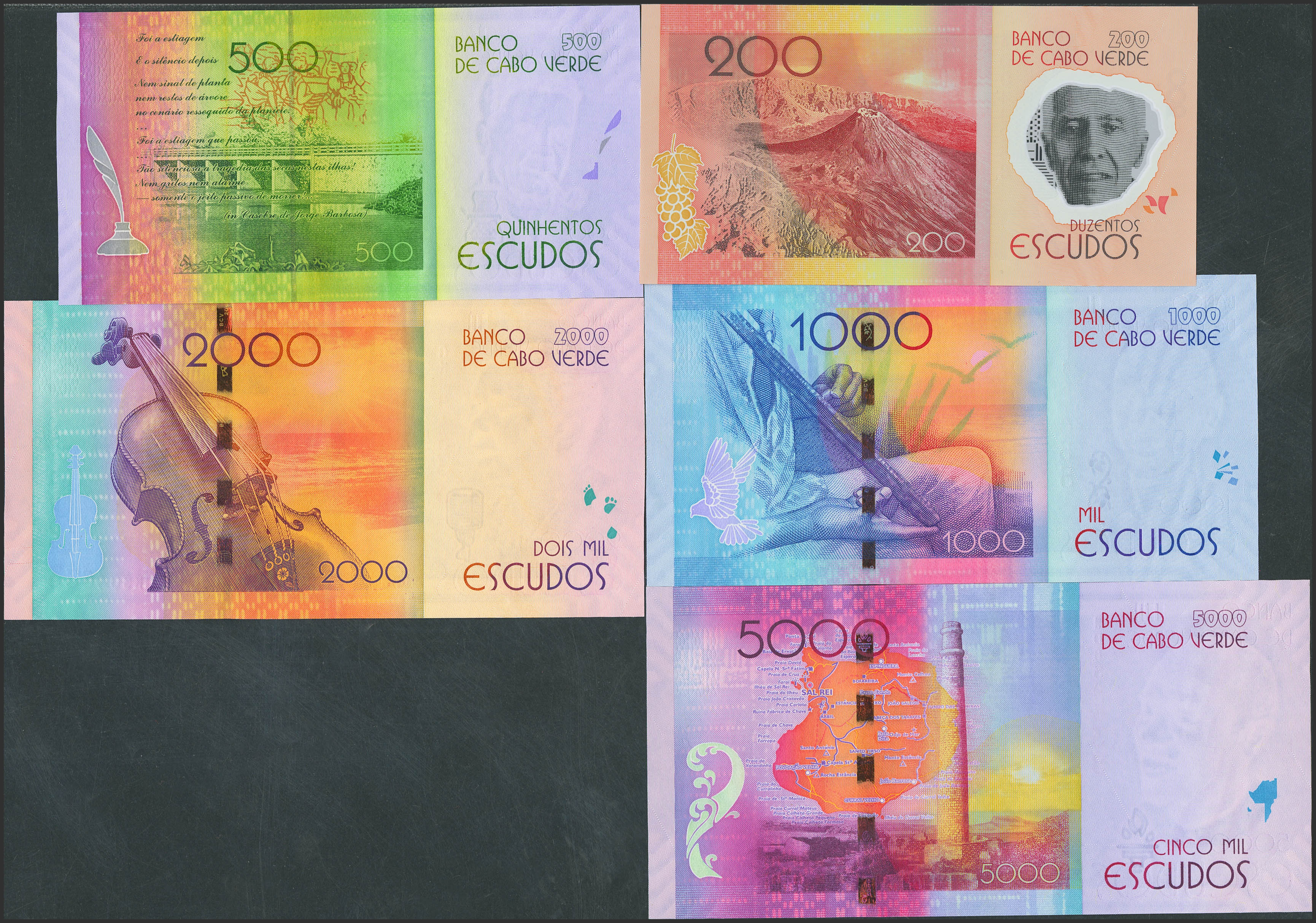 CAPE VERDE. Complete set of 5 notes from 200 to 5000 Escudos. 2014. Banco Nacional. (Pick: 71, 72, 73, 74, 75). Uncirculated.