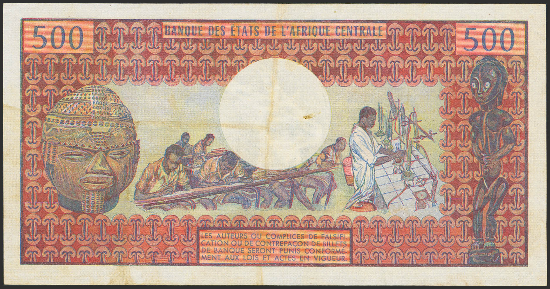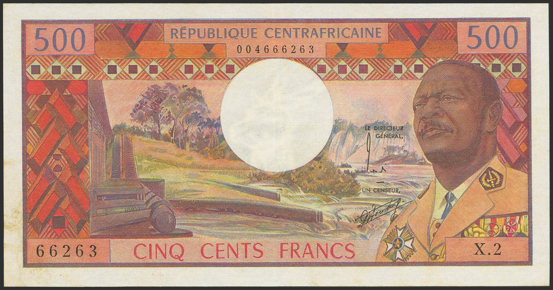CENTRAL AFRICAN REPUBLIC. 500 Francs. (1974ca). Banque des Etats de l'Afrique Centrale. (Pick: 1). More than Very Fine.