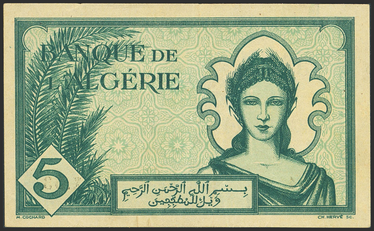 ALGERIA. 5 Francs. 16 November 1942. Banque de l’Algerie. (Pick: 91). More than Very Fine.