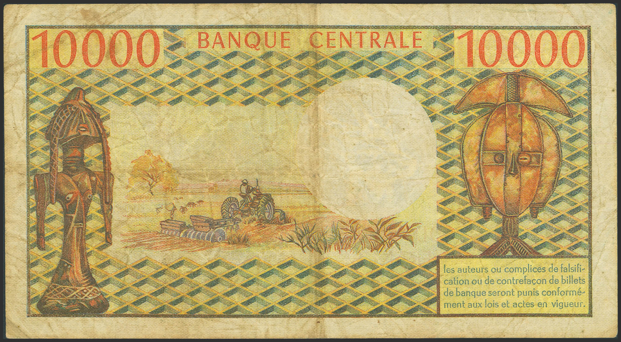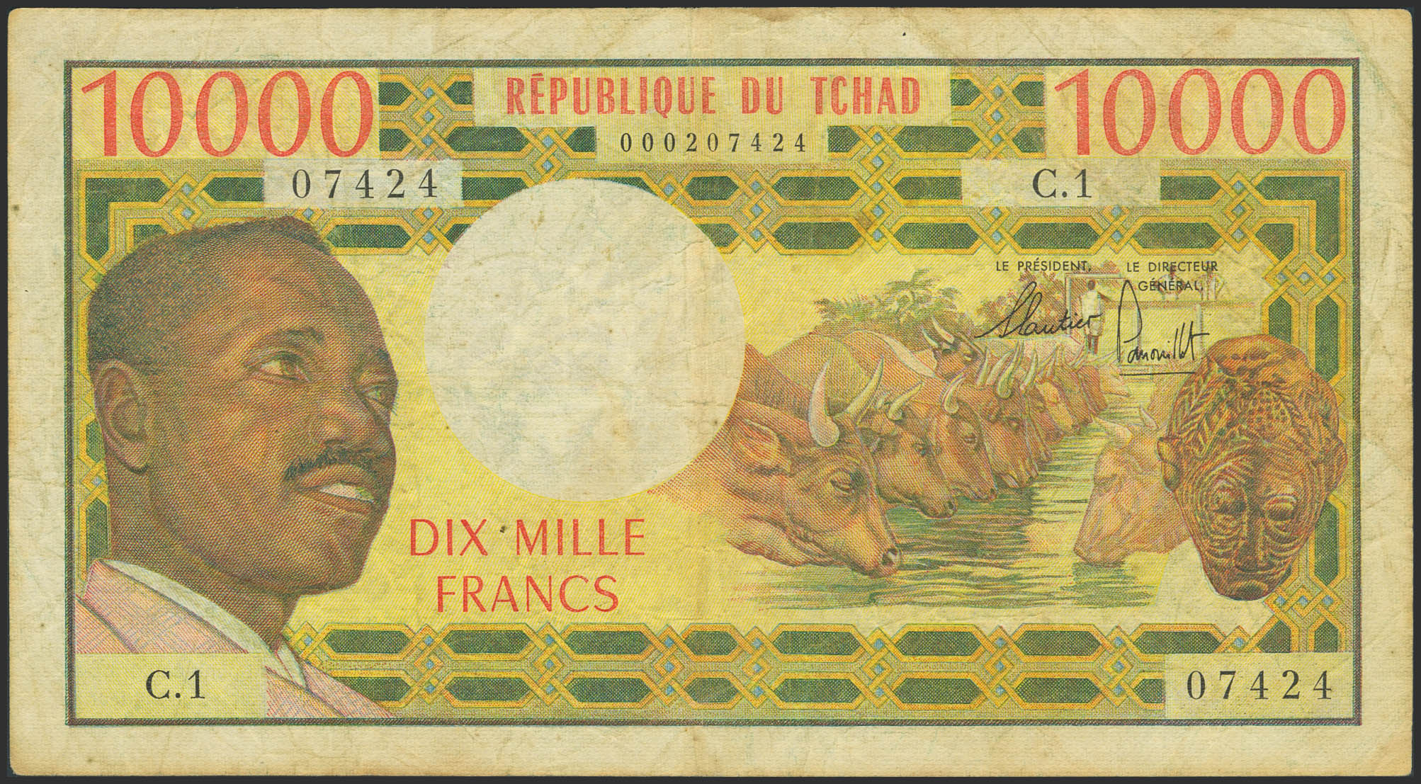 CHAD. 10000 Francs. (1971ca). Banque des Etats de l'Afrique Centrale. (Pick: 1). No pinholes or tears. More than Fine.