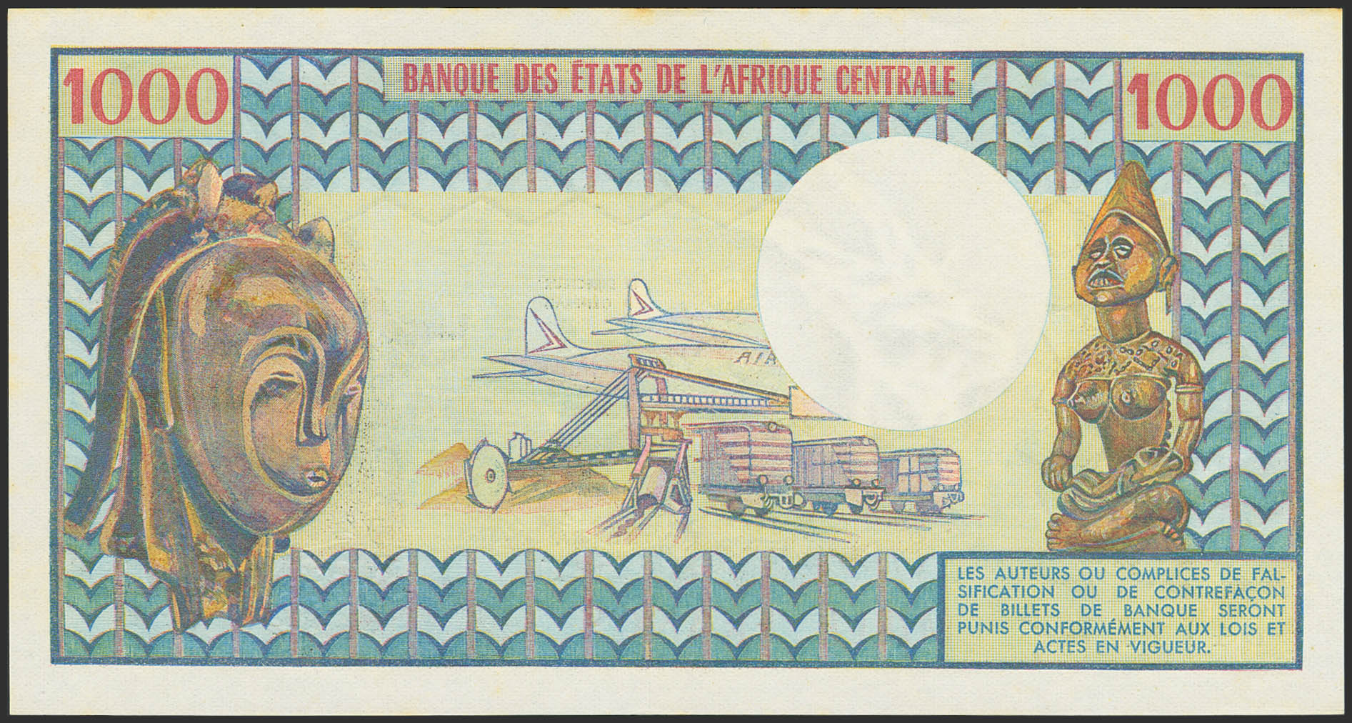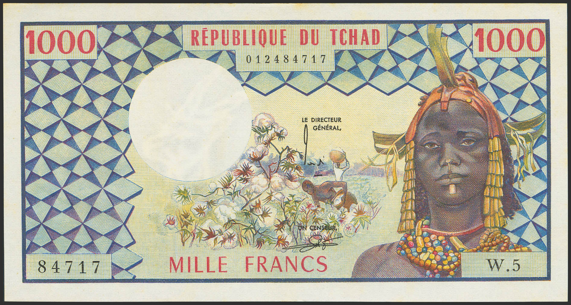 CHAD. 1000 Francs. (1974ca). Banque des Etats de l'Afrique Centrale. (Pick: 3a). Small and light rust stain on top edge. Uncirculated.