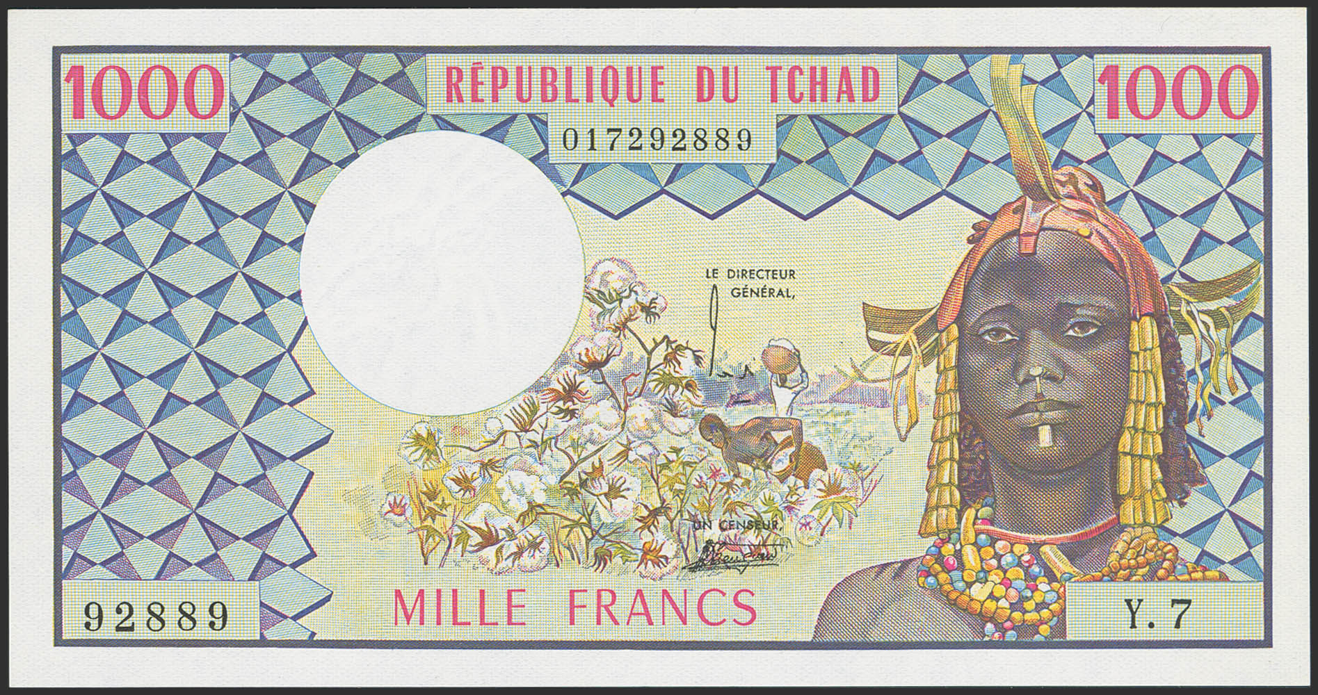 CHAD. 1000 Francs. (1974ca). Banque des Etats de l'Afrique Centrale. (Pick: 3b). Less than Uncirculated.