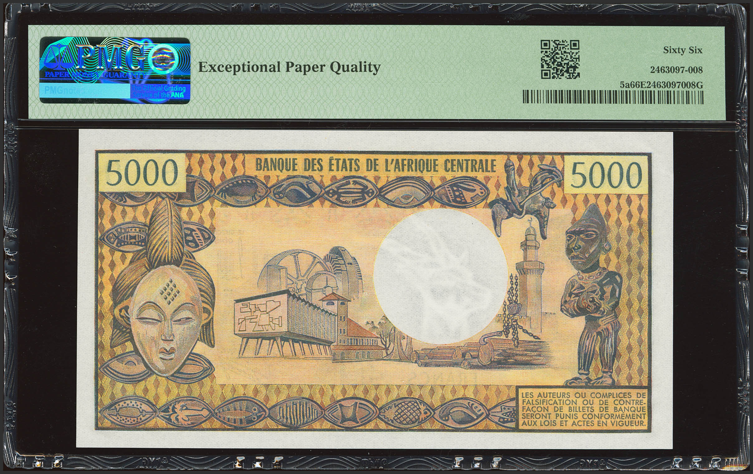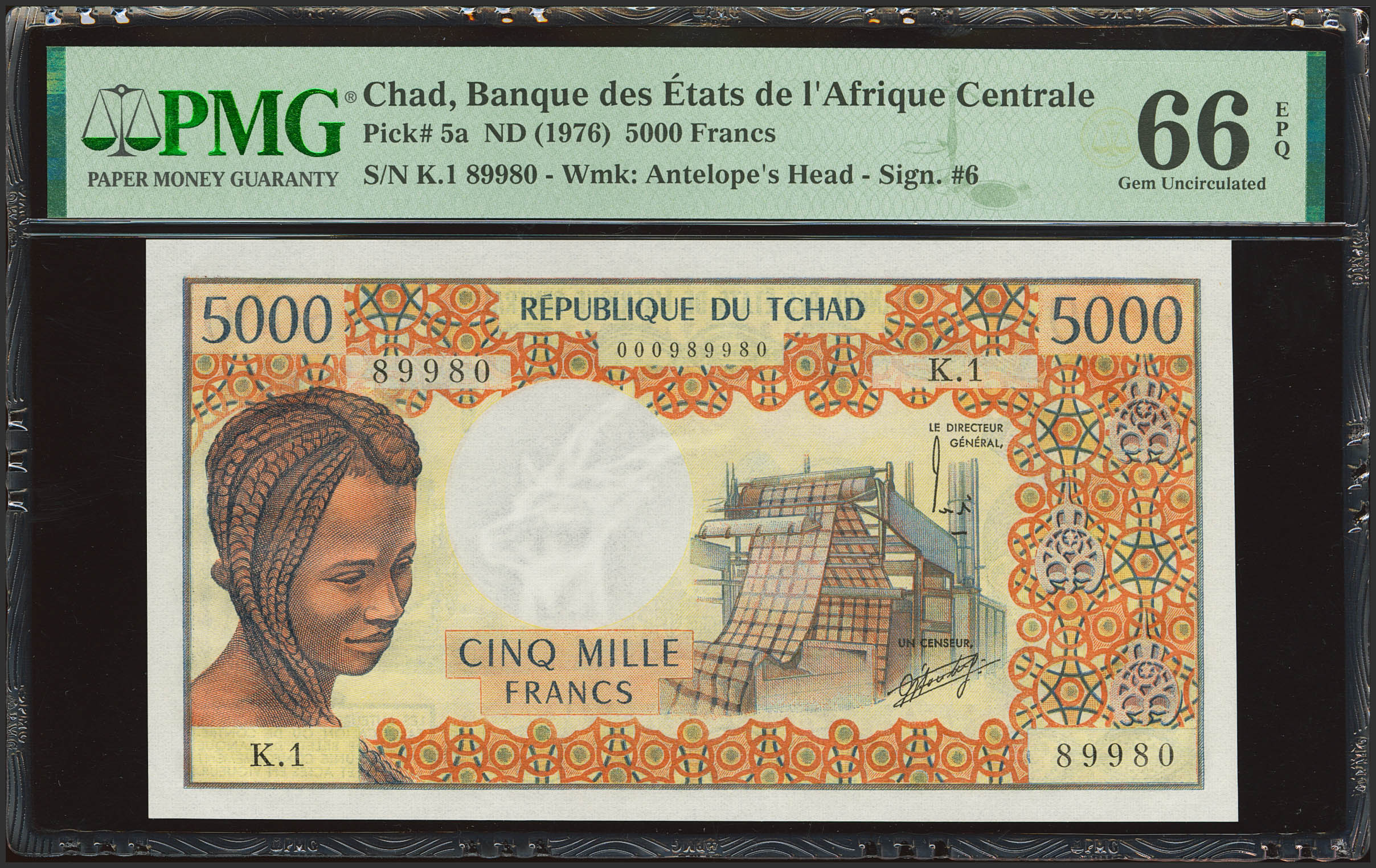 CHAD. 5000 Francs. (1976ca). Banque des Etats de l'Afrique Centrale. (Pick: 5a). PMG66EPQ.