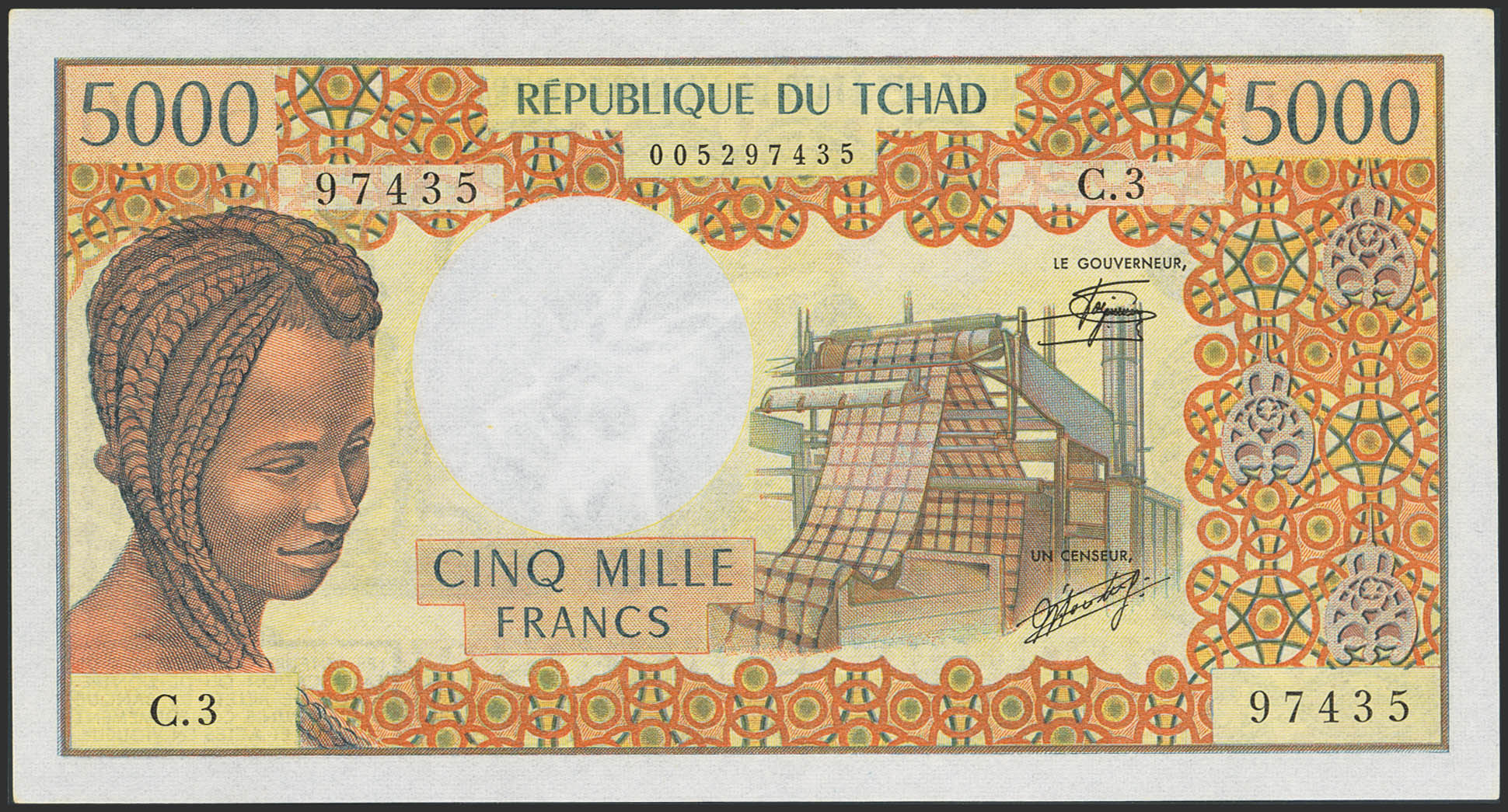 CHAD. 5000 Francs. (1978ca). Banque des Etats de l'Afrique Centrale. (Pick: 5b). Almost Uncirculated.