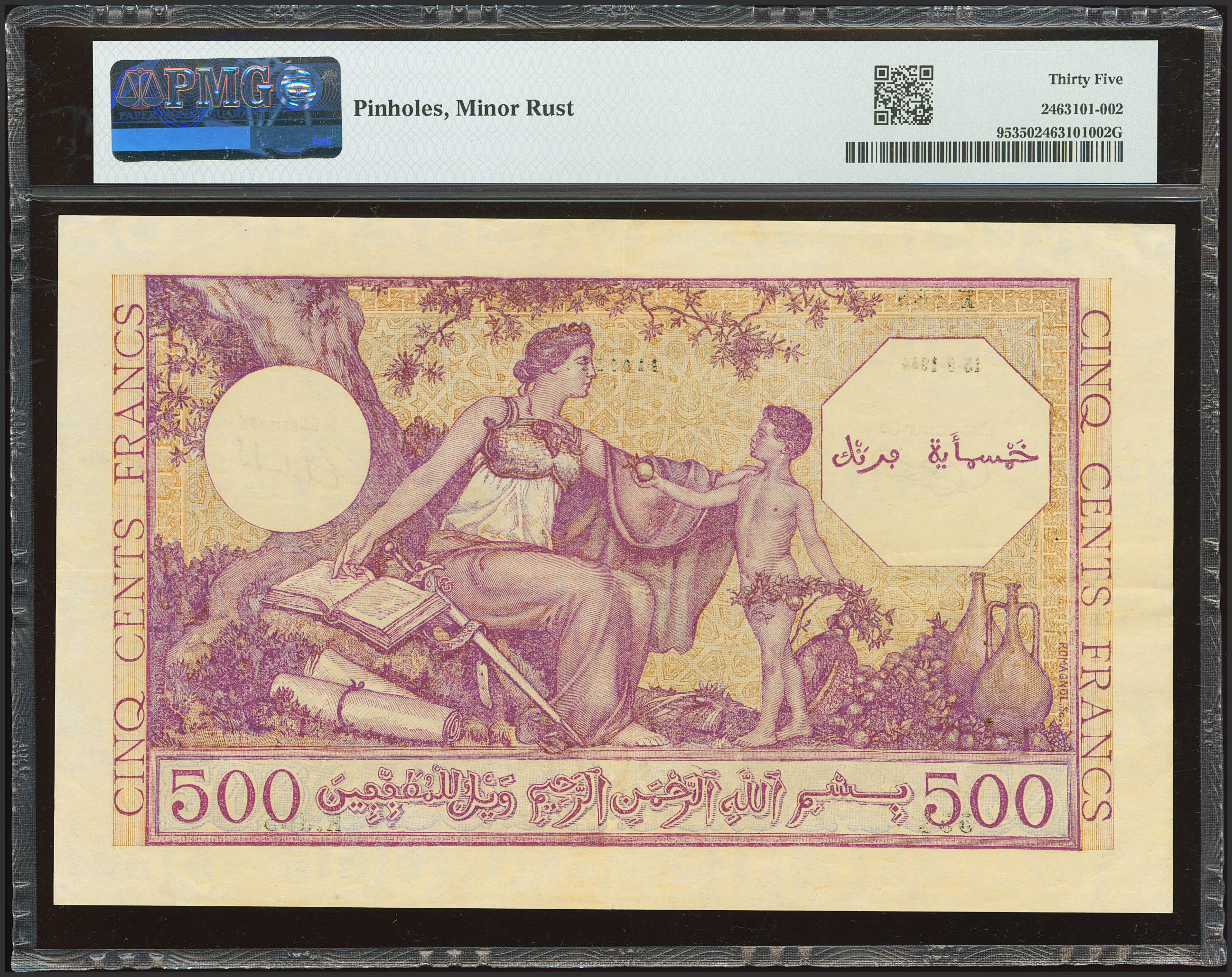 ALGERIA. 500 Francs. 15 September 1944. Banque de l'Algerie. (Pick: 95). PMG35 (pinholes, minor rust).