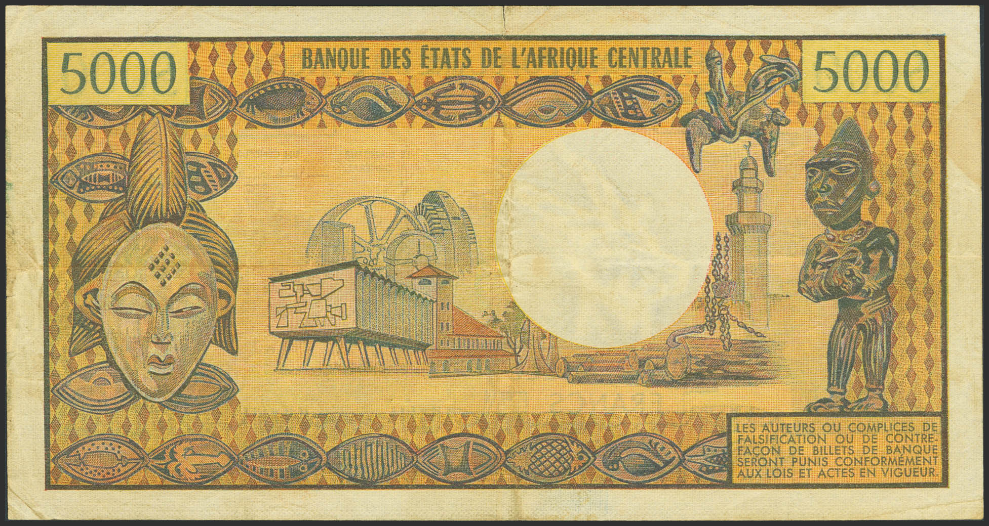 CONGO. 5000 Francs. (1974ca). Banque Centrale des Etats del'Afrique Centrale. (Pick: 4a). Tear. Very Fine.