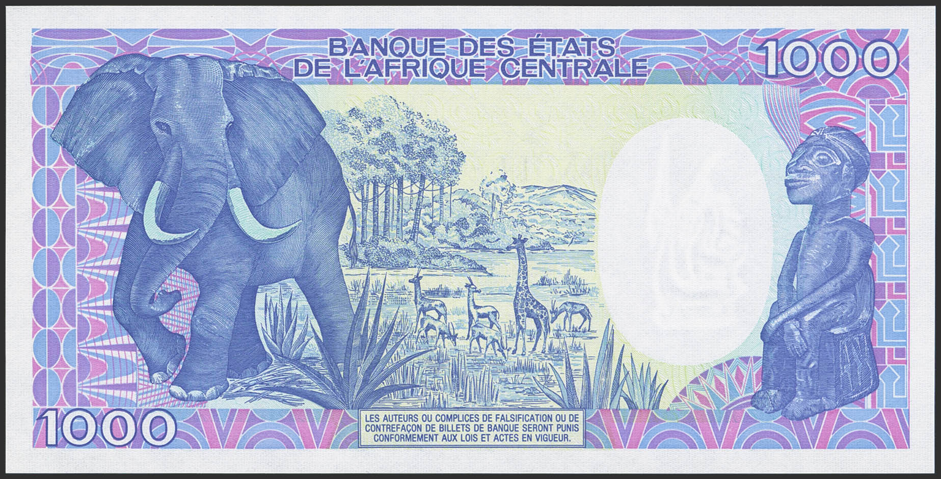 CONGO. 1000 Francs. 1 January 1985. Banque Centrale des Etats del'Afrique Centrale. Republique Populaire du Congo. (Pick: 9). Less than Uncirculated.