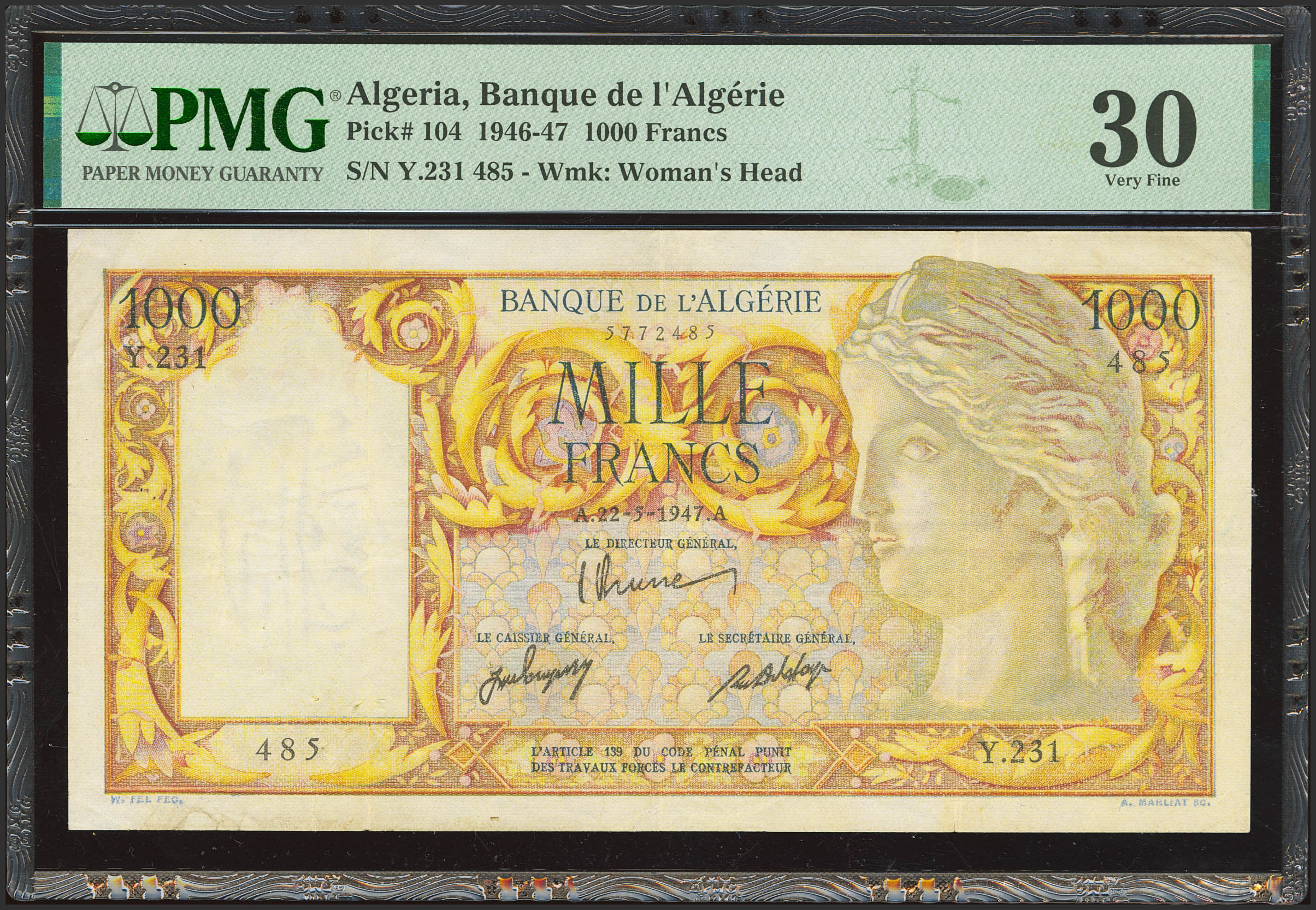 ALGERIA. 1000 Francs. 22 May 1947. Banque de l'Algerie et de la Tunisie. (Pick: 104). PMG30 (pinholes).