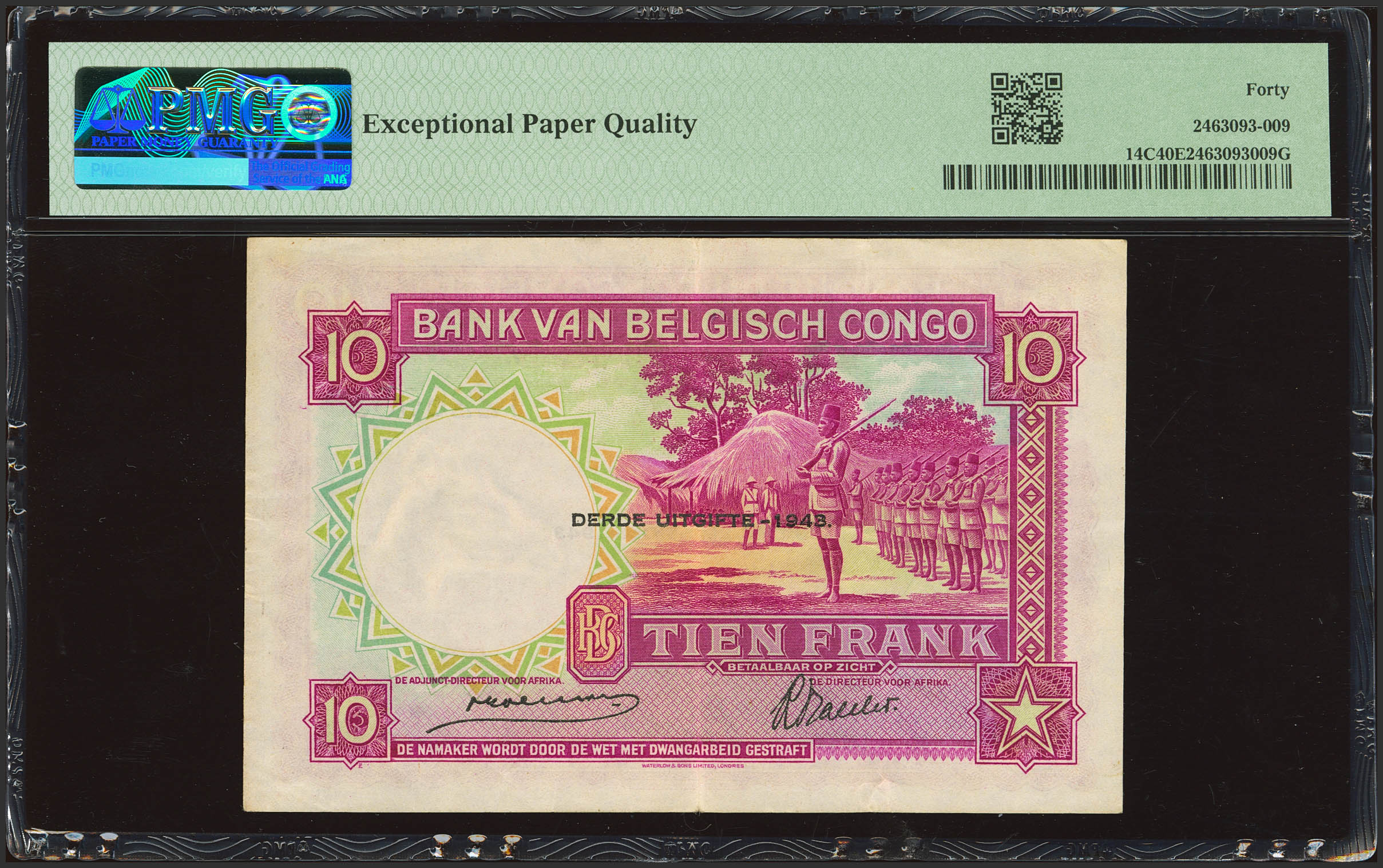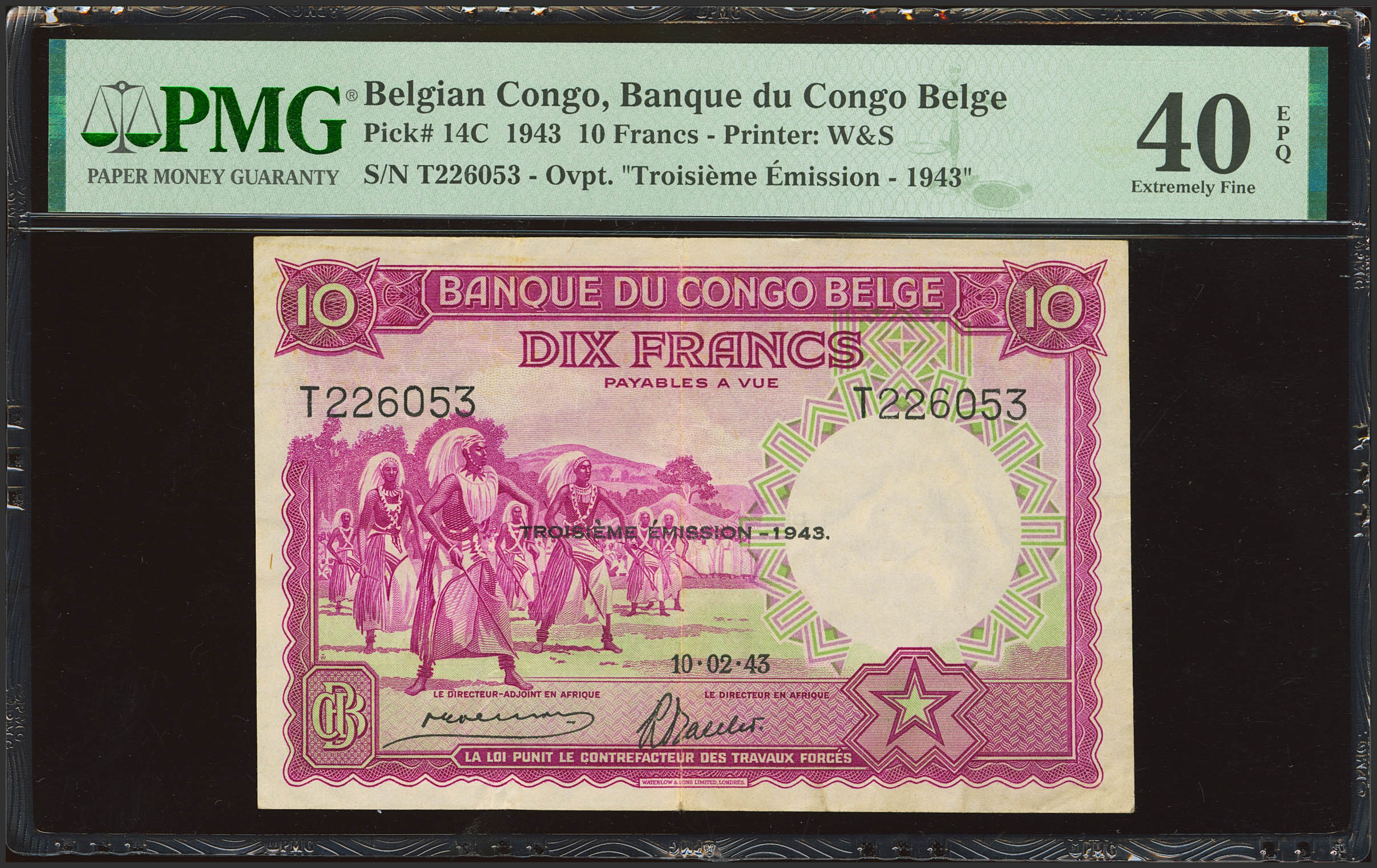 BELGIAN CONGO. 10 Francs. 10 February 1943. Banque du Congo Belge. (Pick: 14C). PMG40EPQ.