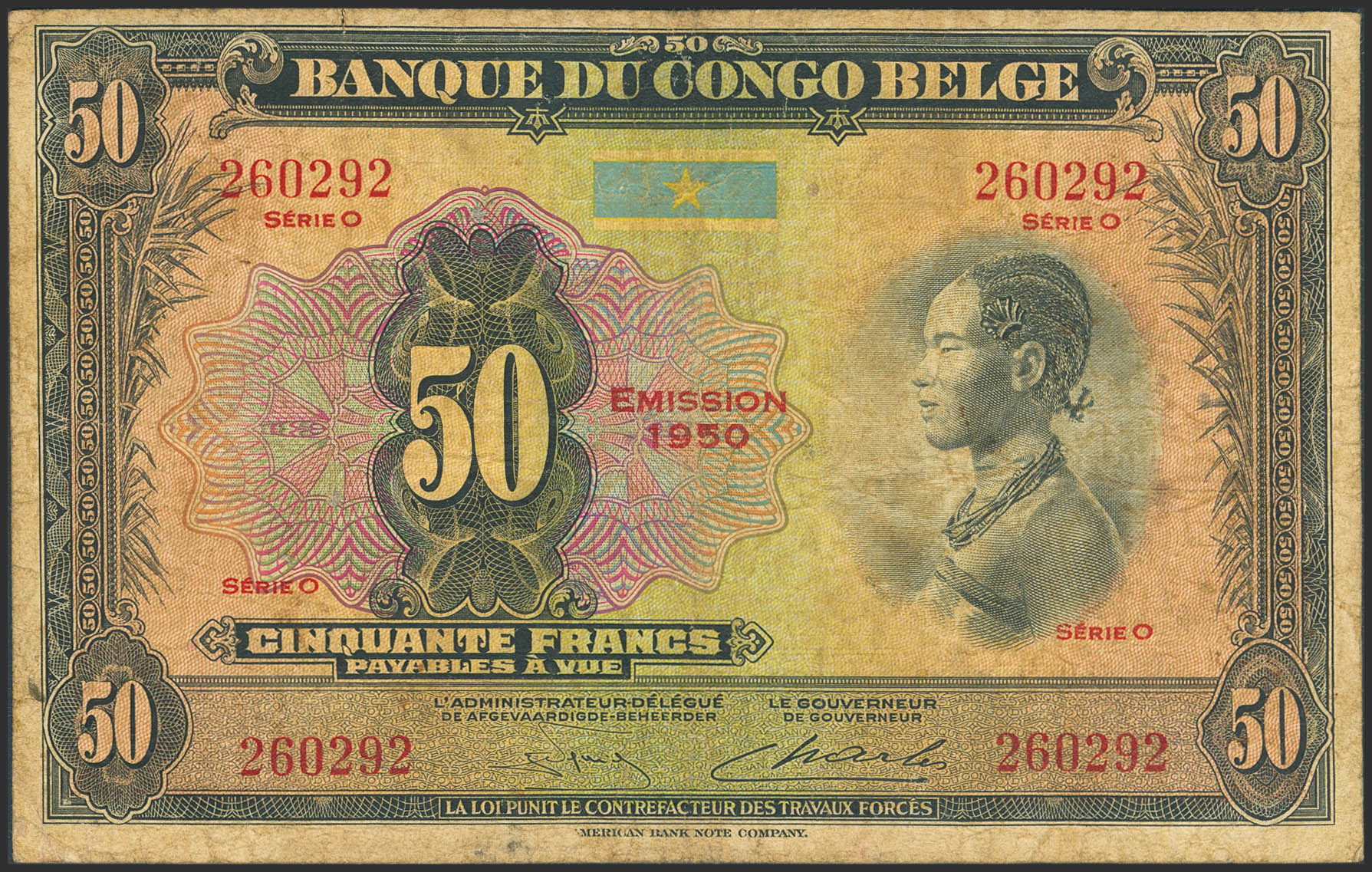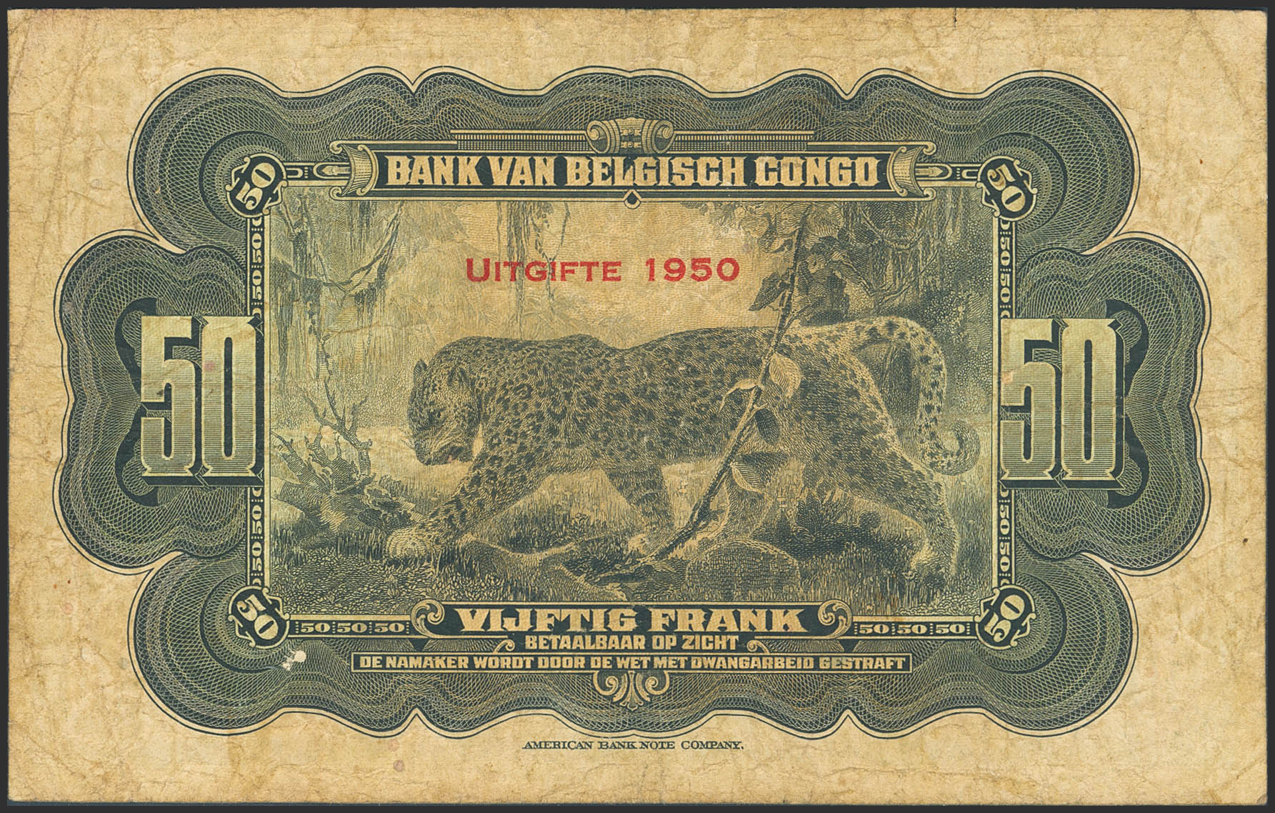 BELGIAN CONGO. 50 Francs. 1950. Banque du Congo Belge. (Pick: 16h). Tear. Fine.