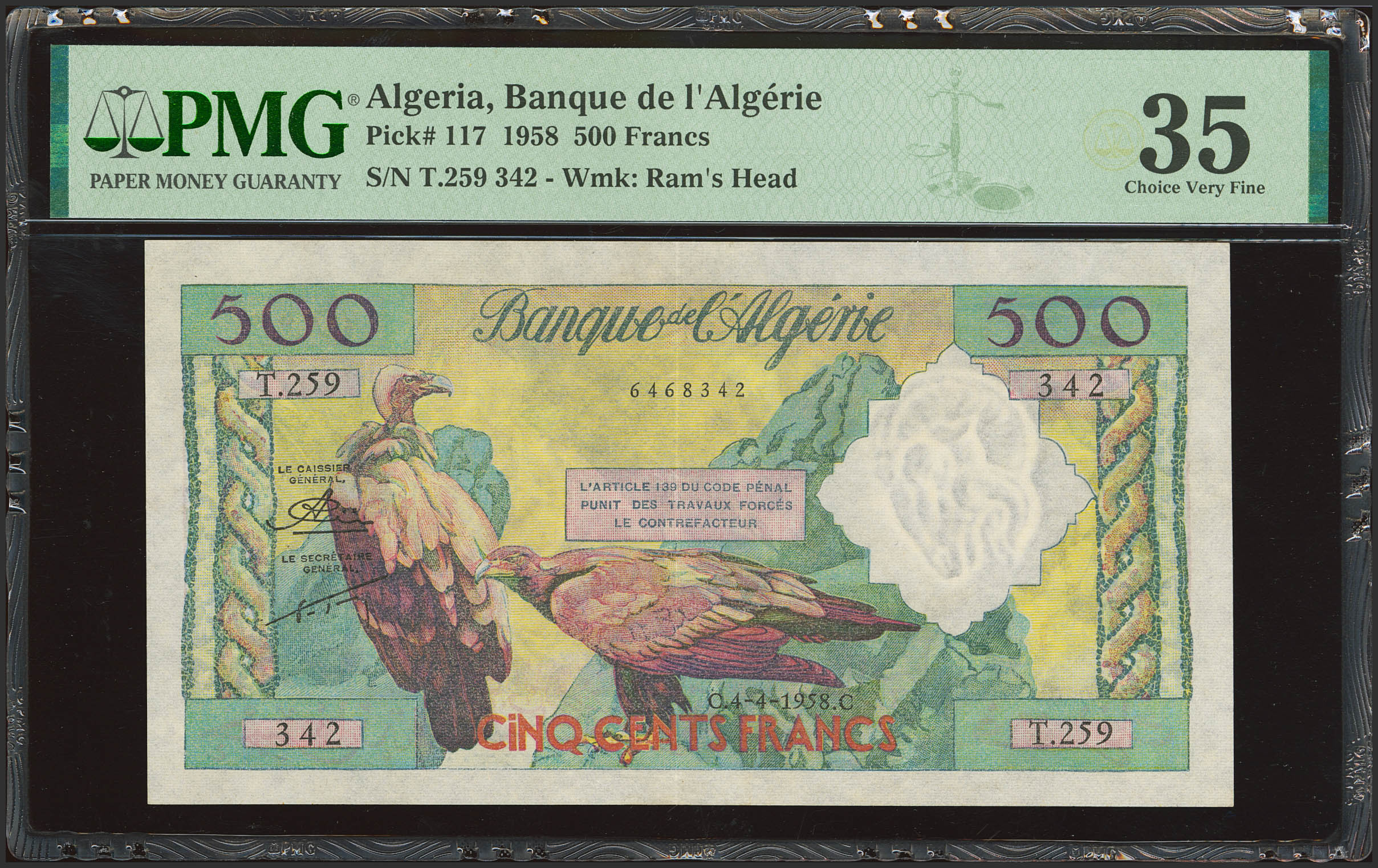 ALGERIA. 500 Francs. 4 April 1958. Banque de l’Algerie. (Pick: 117). PMG35