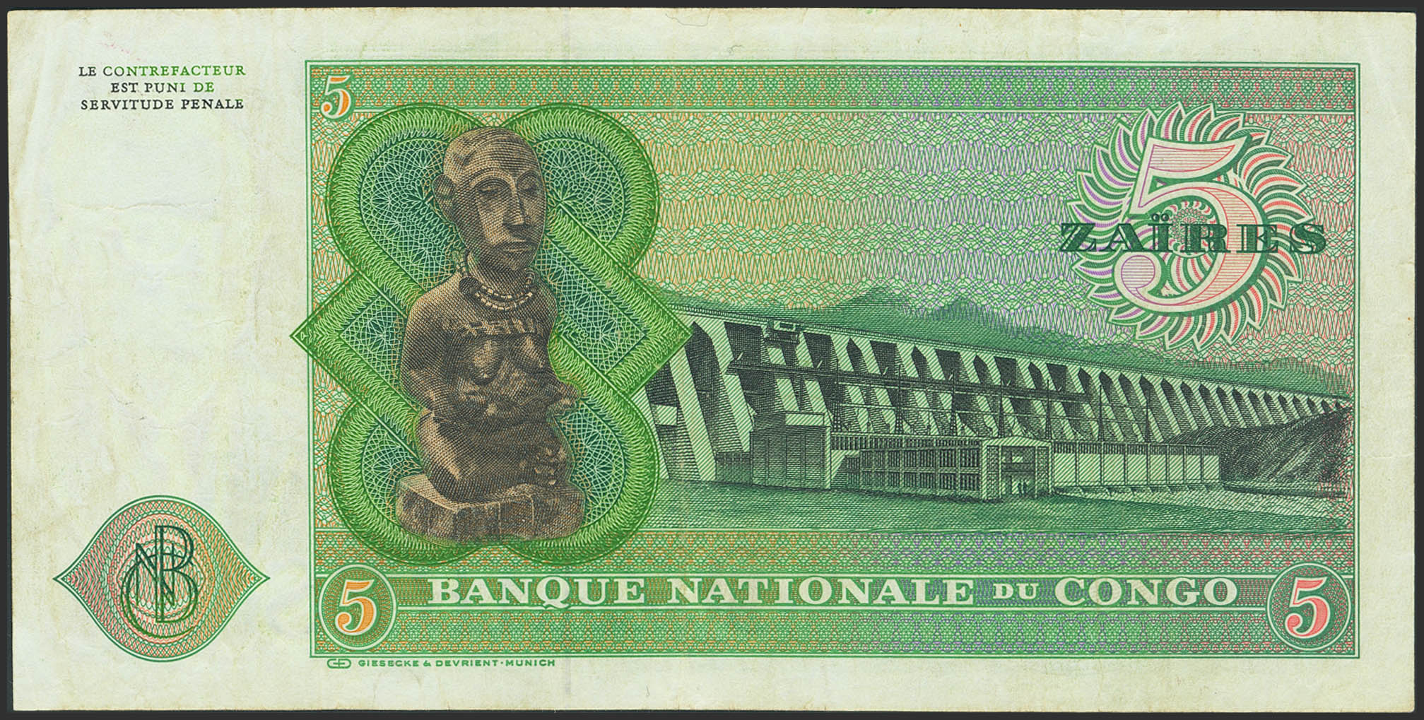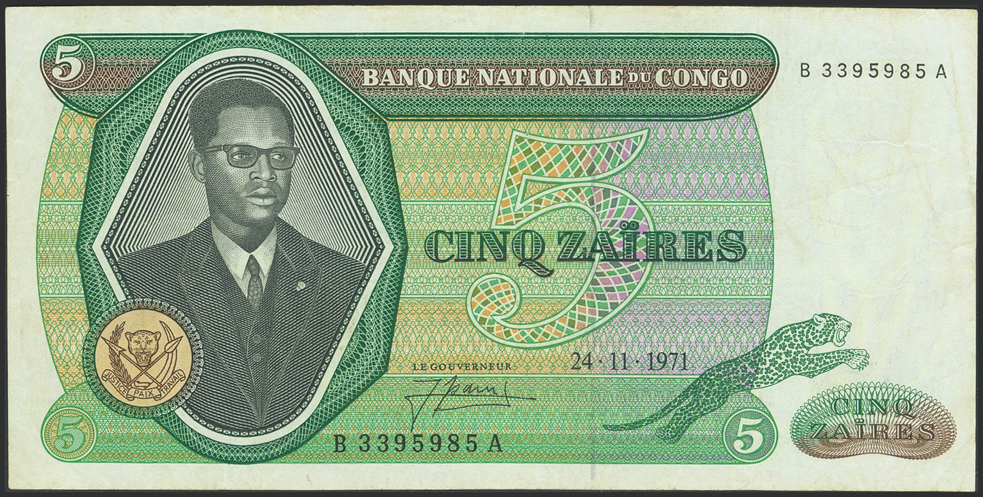 CONGO DEMOCRATIC REPUBLIC. 5 Zaires. 24 November 1971. Banque Nationale. (Pick: 14a). Very Fine.