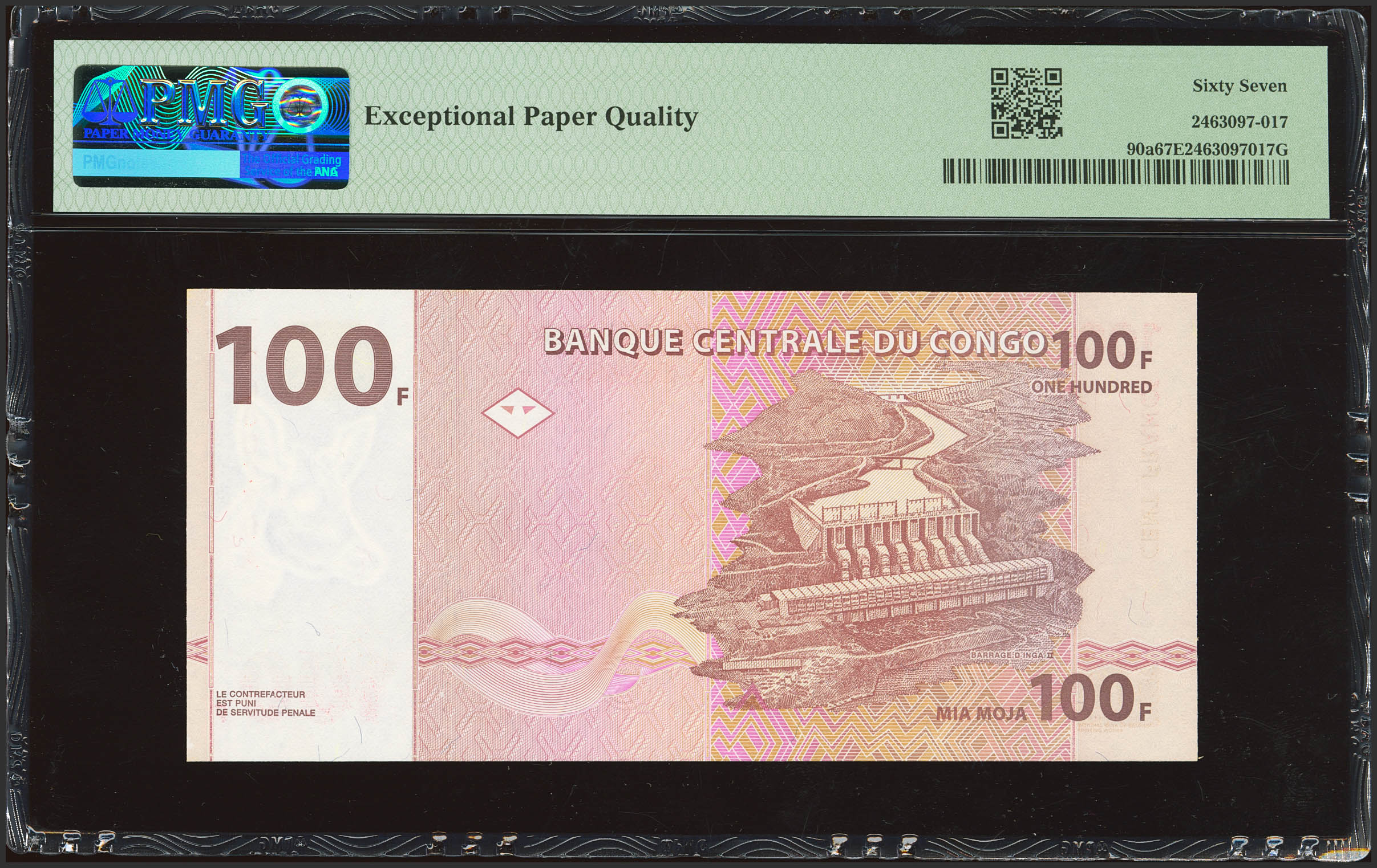 CONGO DEMOCRATIC REPUBLIC. 100 Francs. 1 November 1997. Banque Centrale. (Pick: 90a). PMG67EPQ.