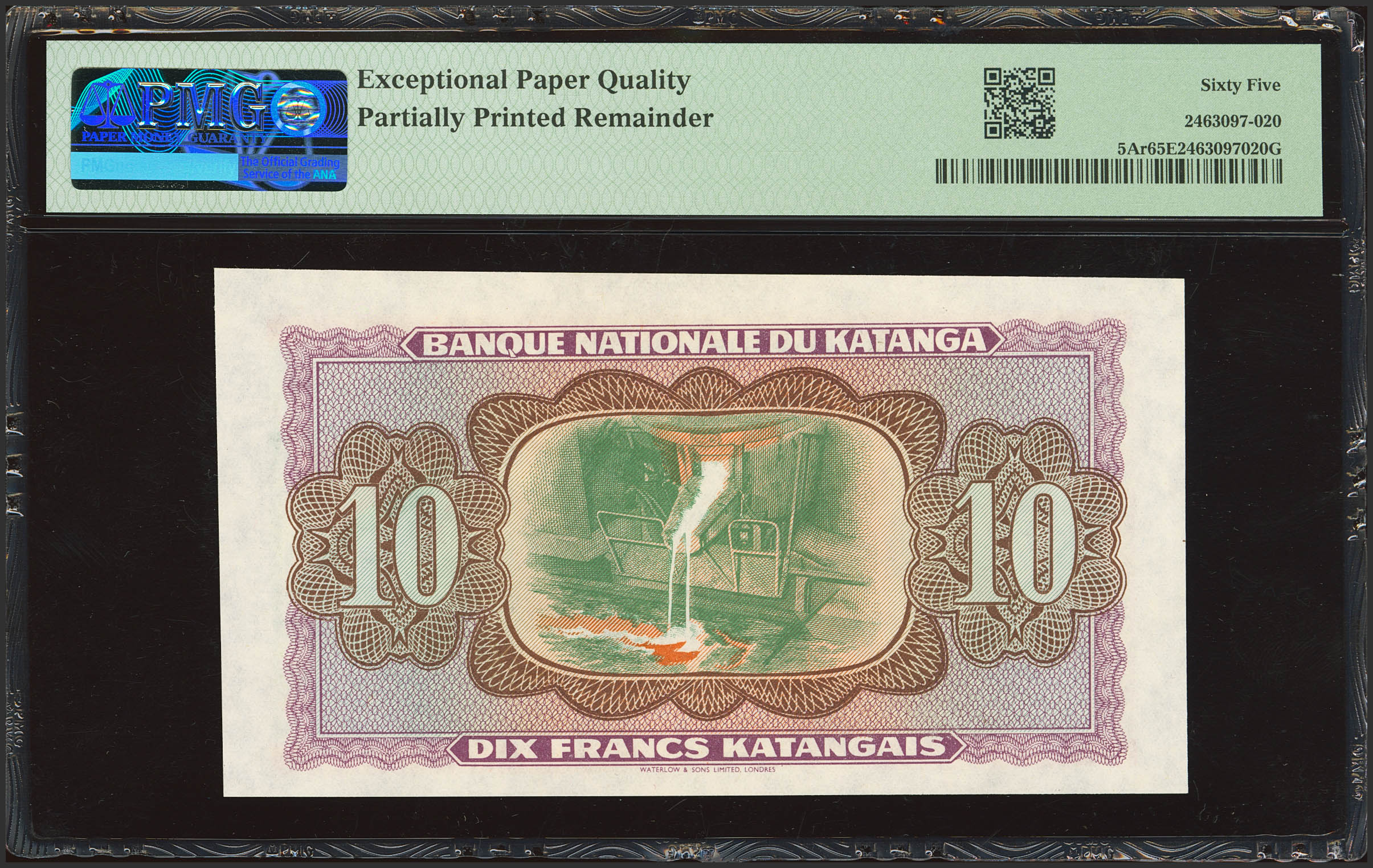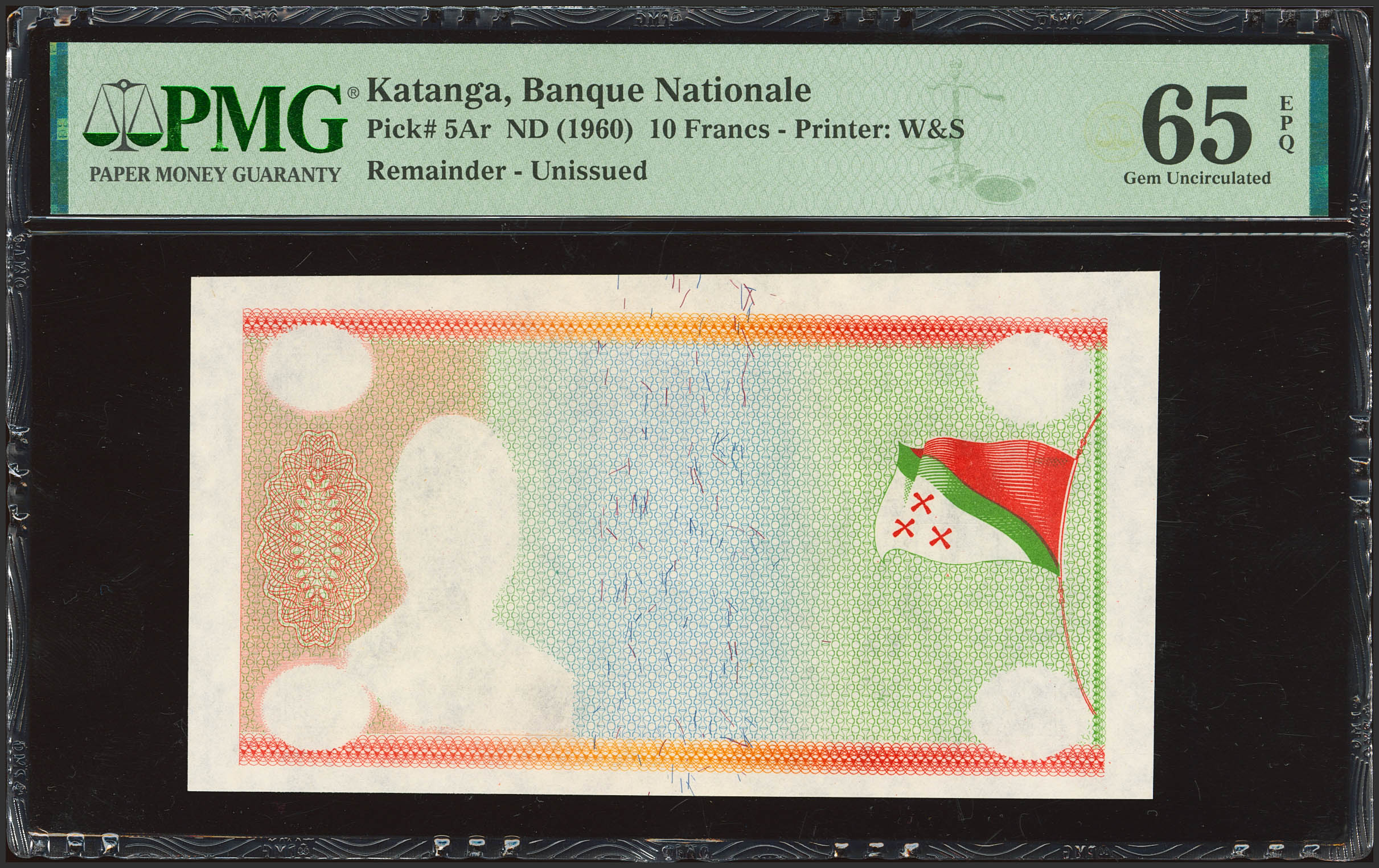 CONGO-KATANGA. 10 Francs Katangais. (1960ca). Banque Nationale. Printing error. Without series or signatures. (Pick: 5Ar). PMG65EPQ (partially printed remainder).