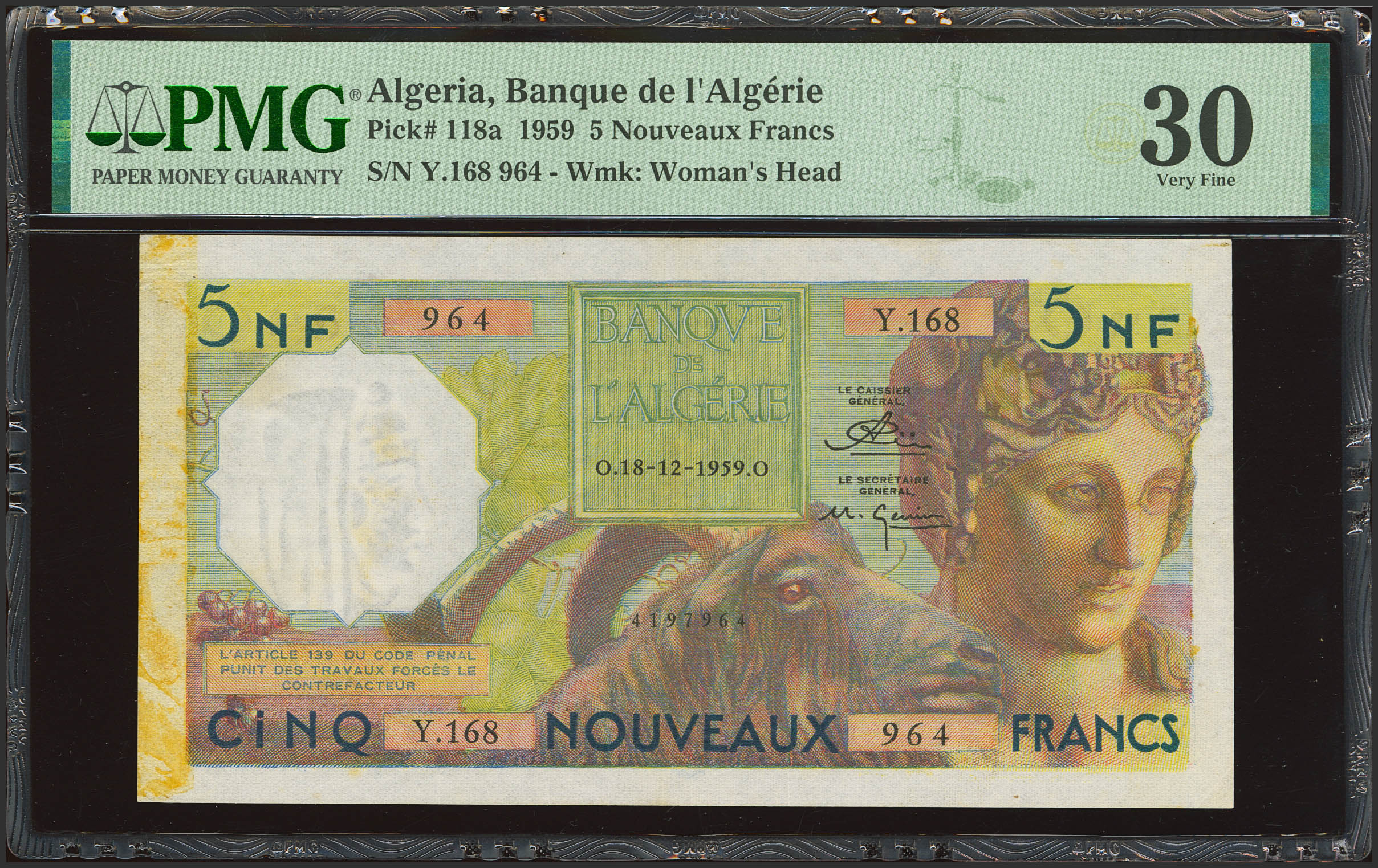 ALGERIA. 5 Nouveaux Francs. 18 December 1959. Banque de l'Algerie et de la Tunisie. (Pick: 118a). PMG30 (previously mounted).