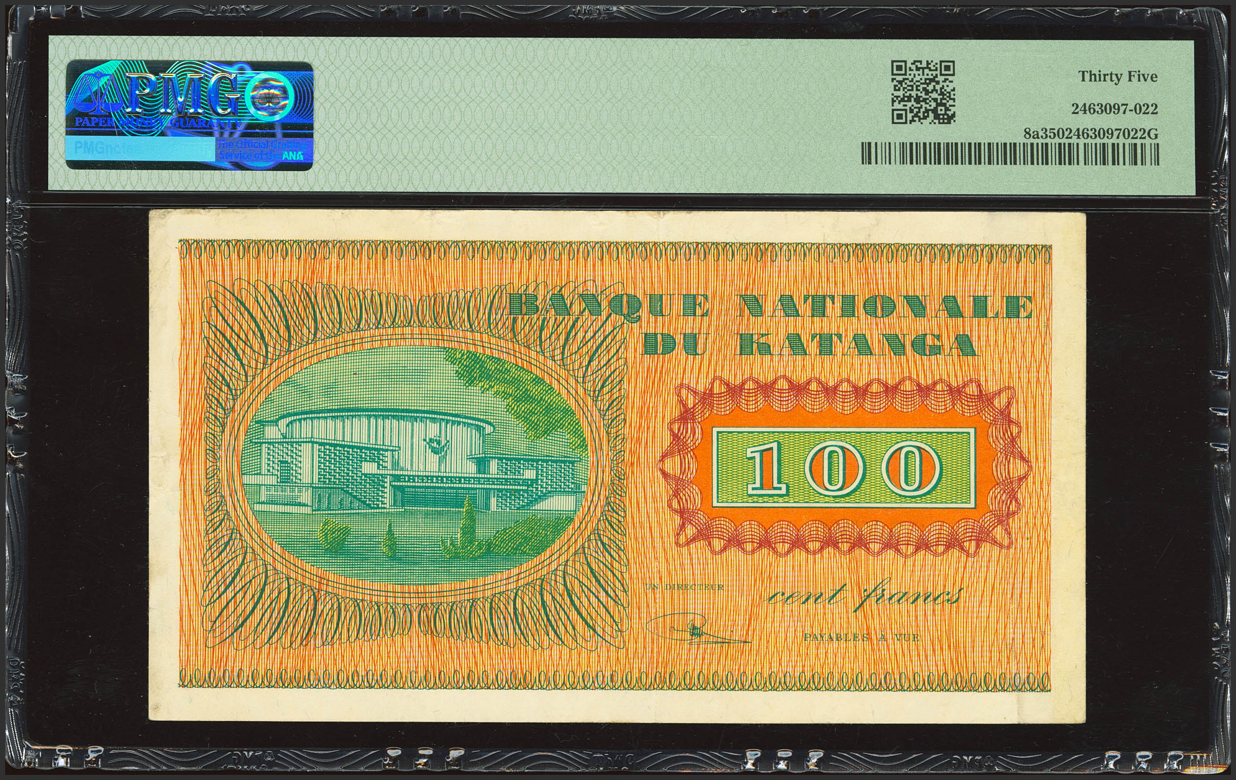 CONGO-KATANGA. 100 Francs. 31 October 1960. Banque Nationale. (Pick: 8a). PMG35.