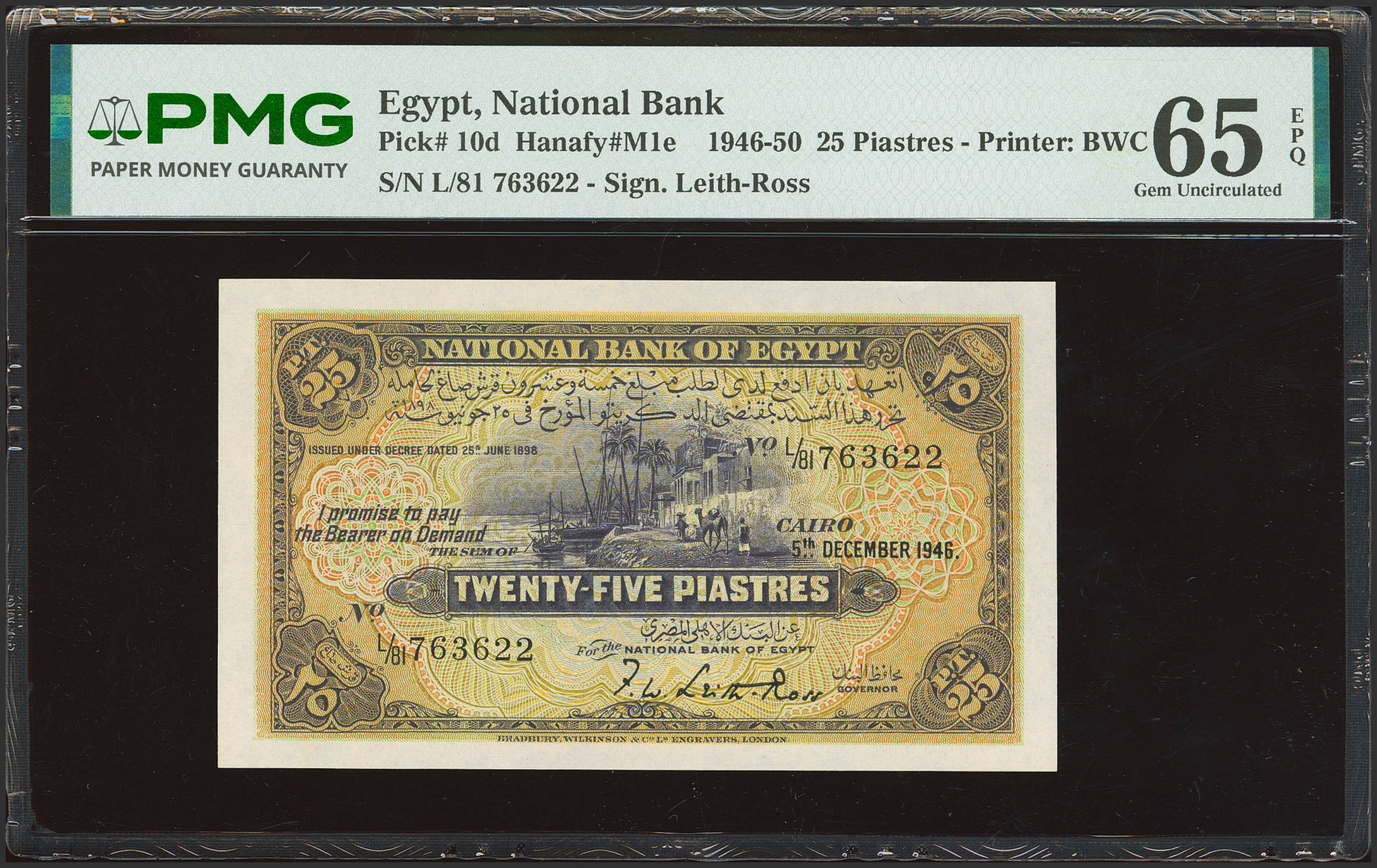 EGYPT. 25 Piastres. 5 December 1946. National Bank. Signature of Leith-Ross. (Pick: 10d). PMG65EPQ.