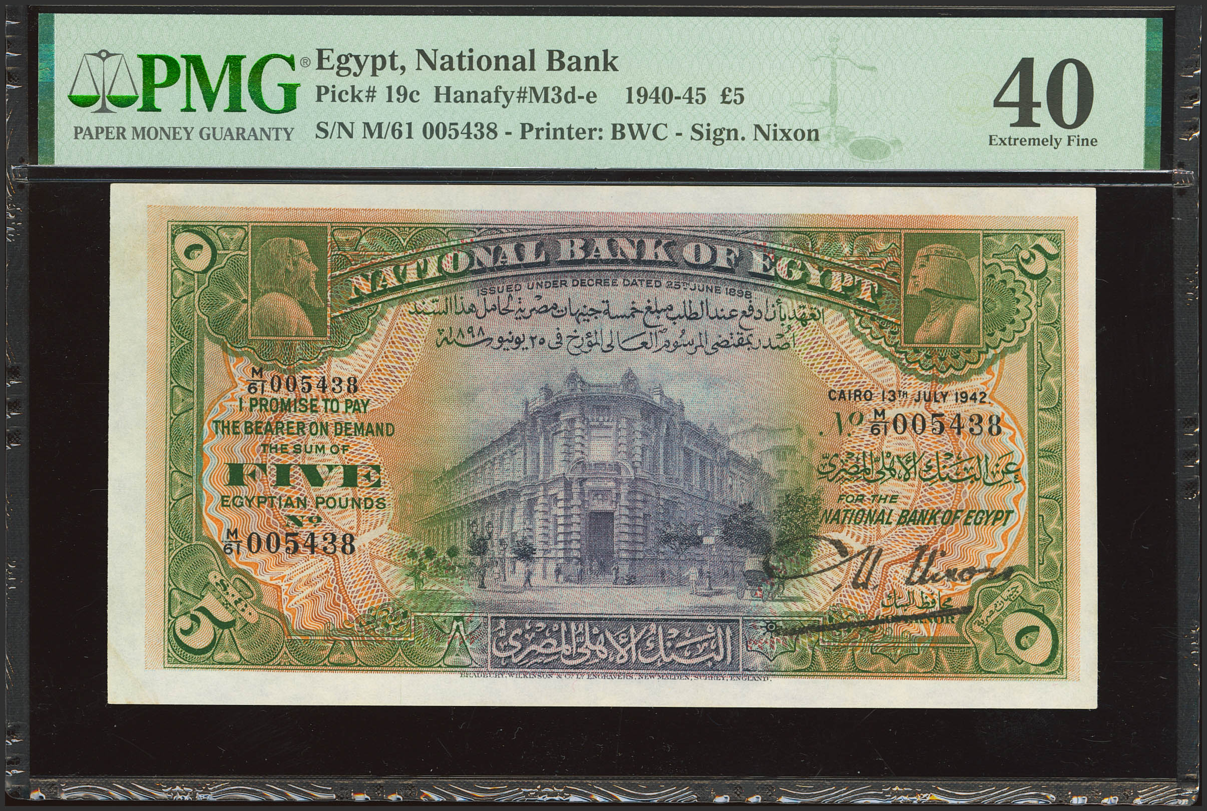 EGYPT. 5 Pounds. 13 July 1942. National Bank. (Pick: 19c). PMG40.