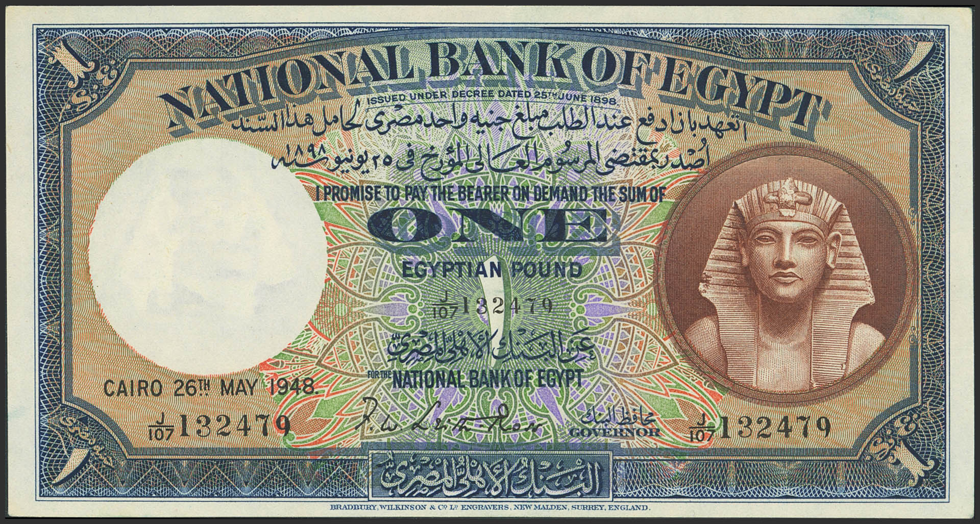EGYPT. 1 Pound. 26 May 1948. National Bank. Signature of Leith-Ross. (Pick: 22d). Almost Uncirculated.