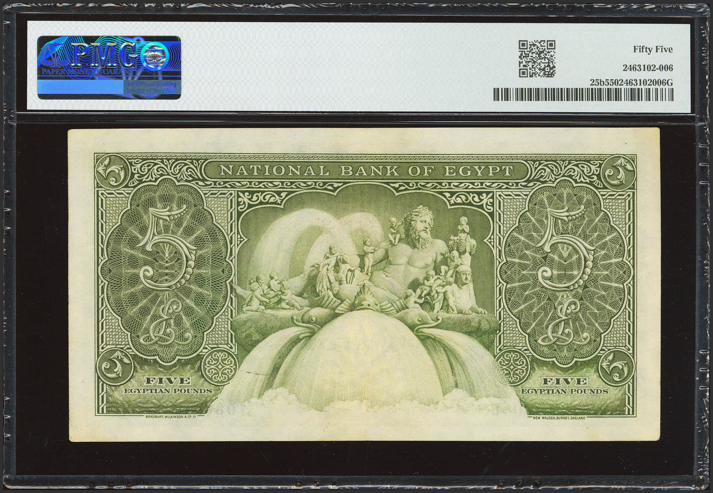 EGYPT. 5 Pounds. 1951. National Bank. (Pick: 25b). PMG55.
