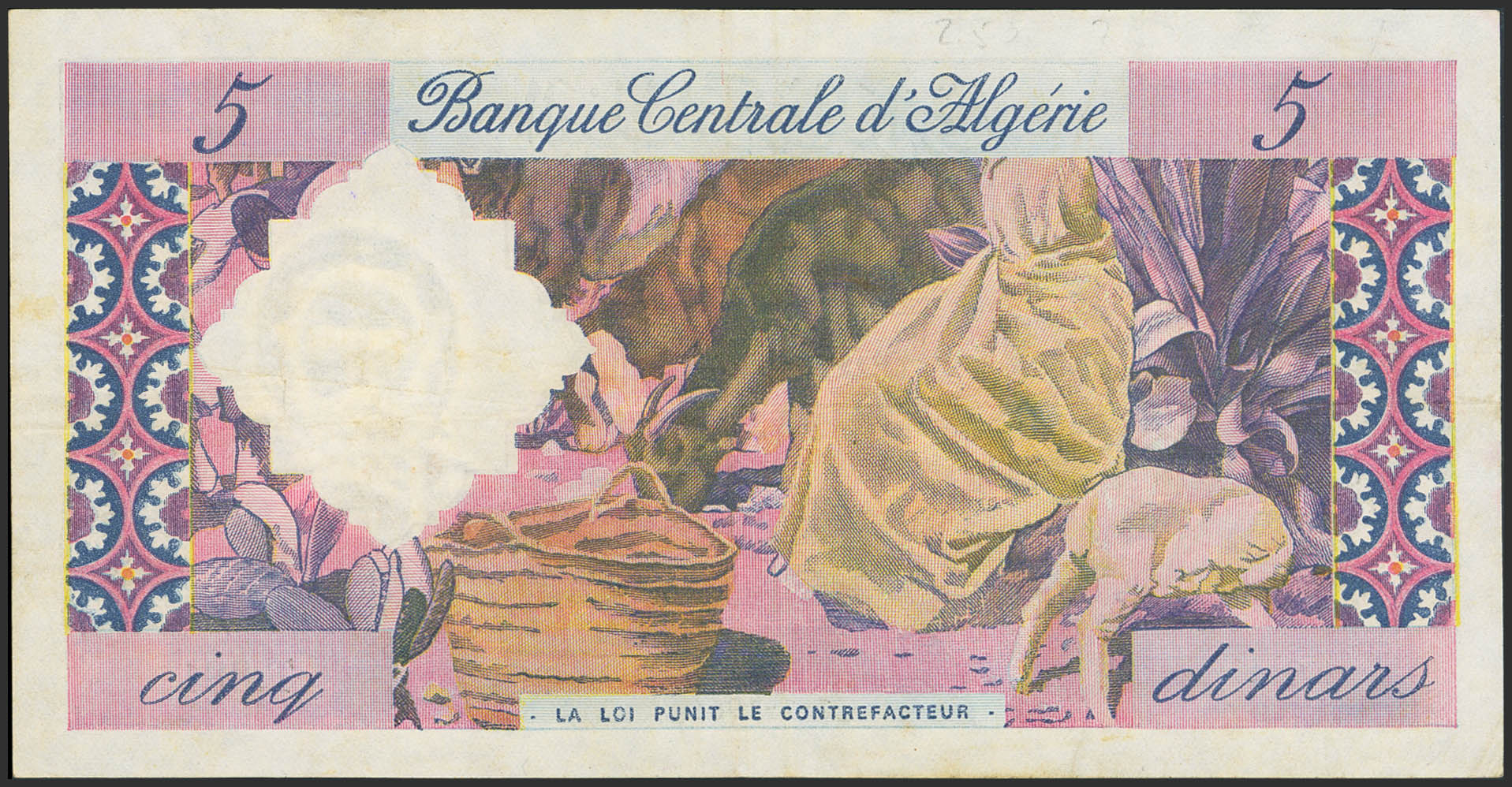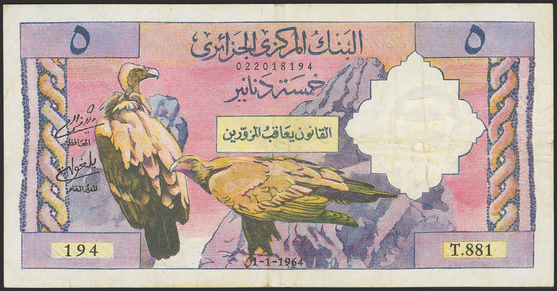 ALGERIA. 5 Dinars. 1 January 1964. Banque Centrale d'Algerie. Algerian block style. (Pick: 122b). More than Very Fine.