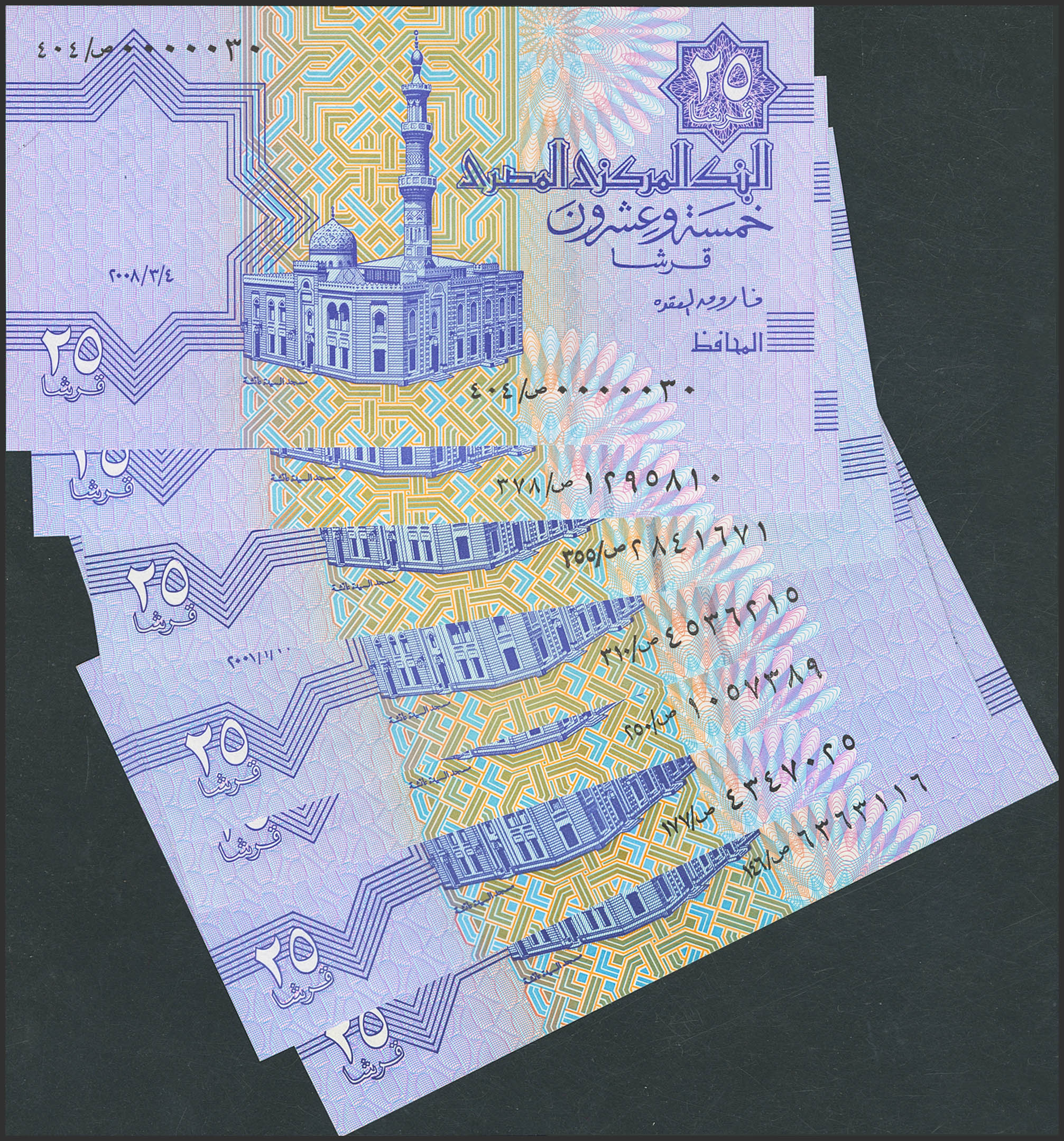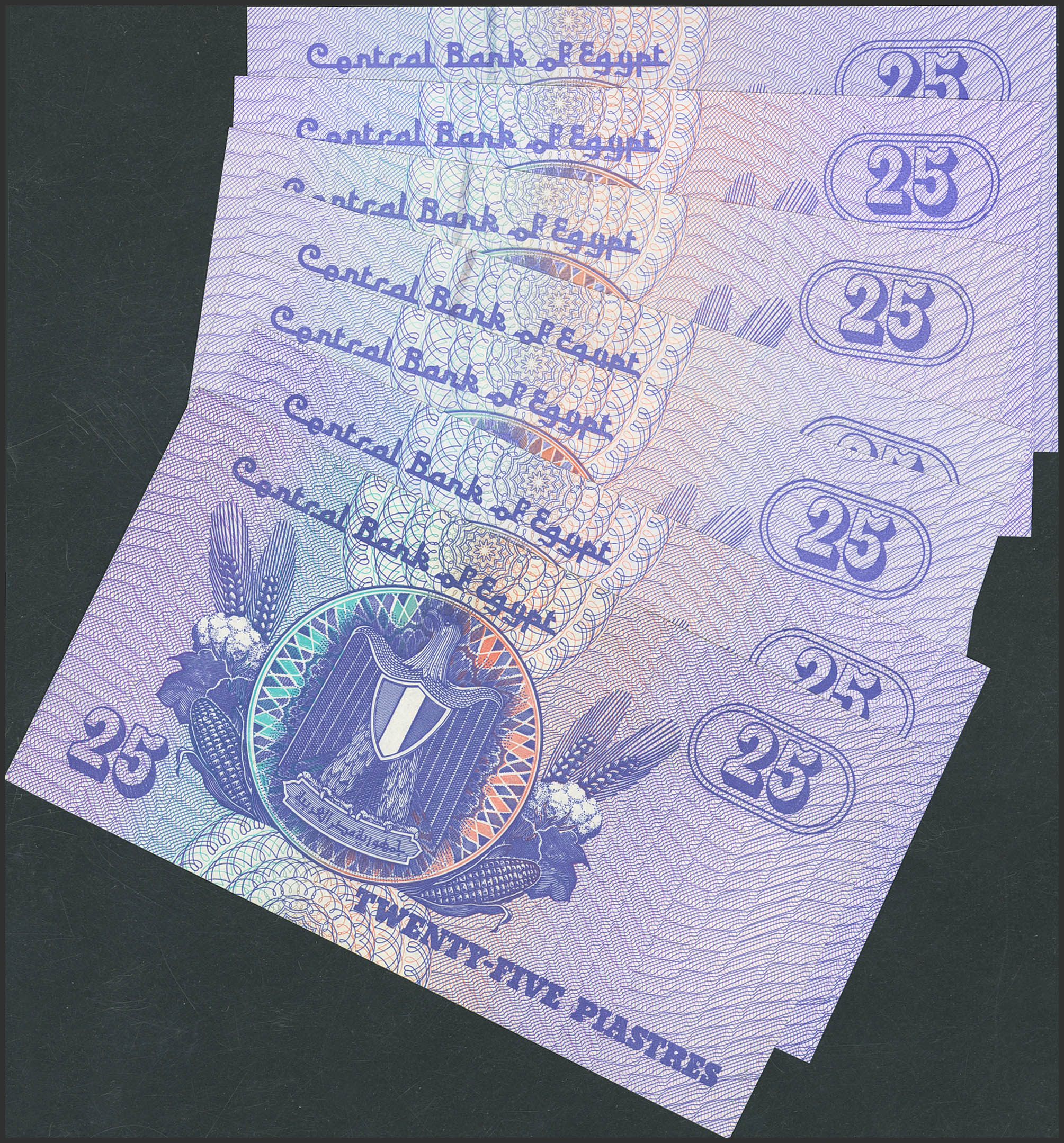 EGYPT. Lot of 7 notes of 25 Piastres. 1985 to 2008. Central Bank. (Pick: 57a, 57b(2), 57d, 57f, 57g, 57h). Uncirculated.