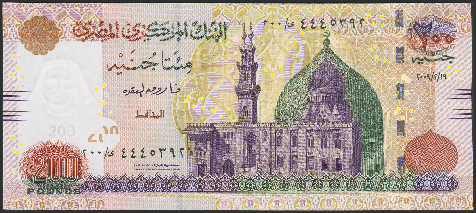 EGYPT. 200 Pounds. 2009. Central Bank. (Pick: 69a). Uncirculated.