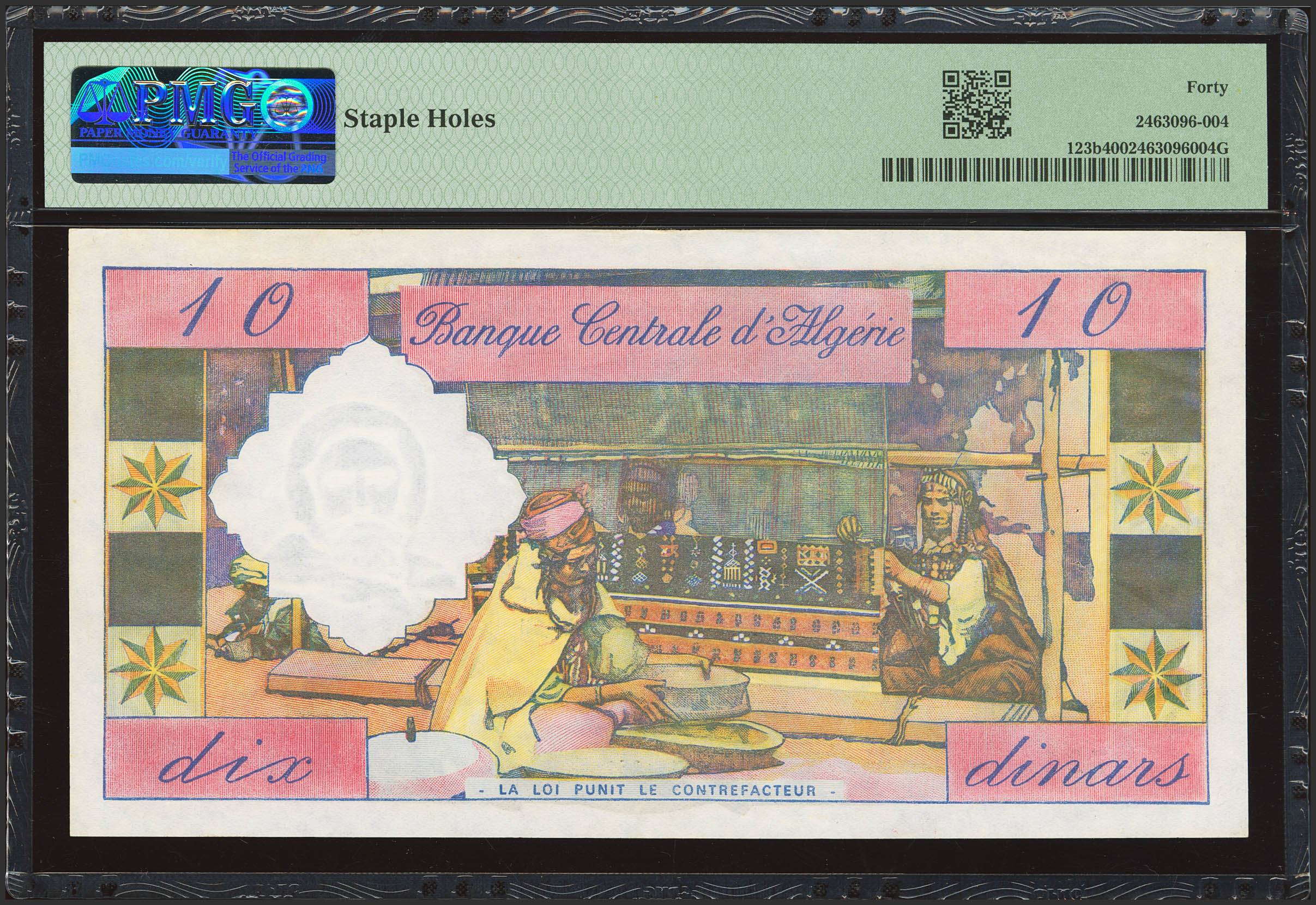 ALGERIA. 10 Dinars. 1 January 1964. Banque Centrale d'Algerie. Algerian block style. (Pick: 123b). PMG40 (staple holes).