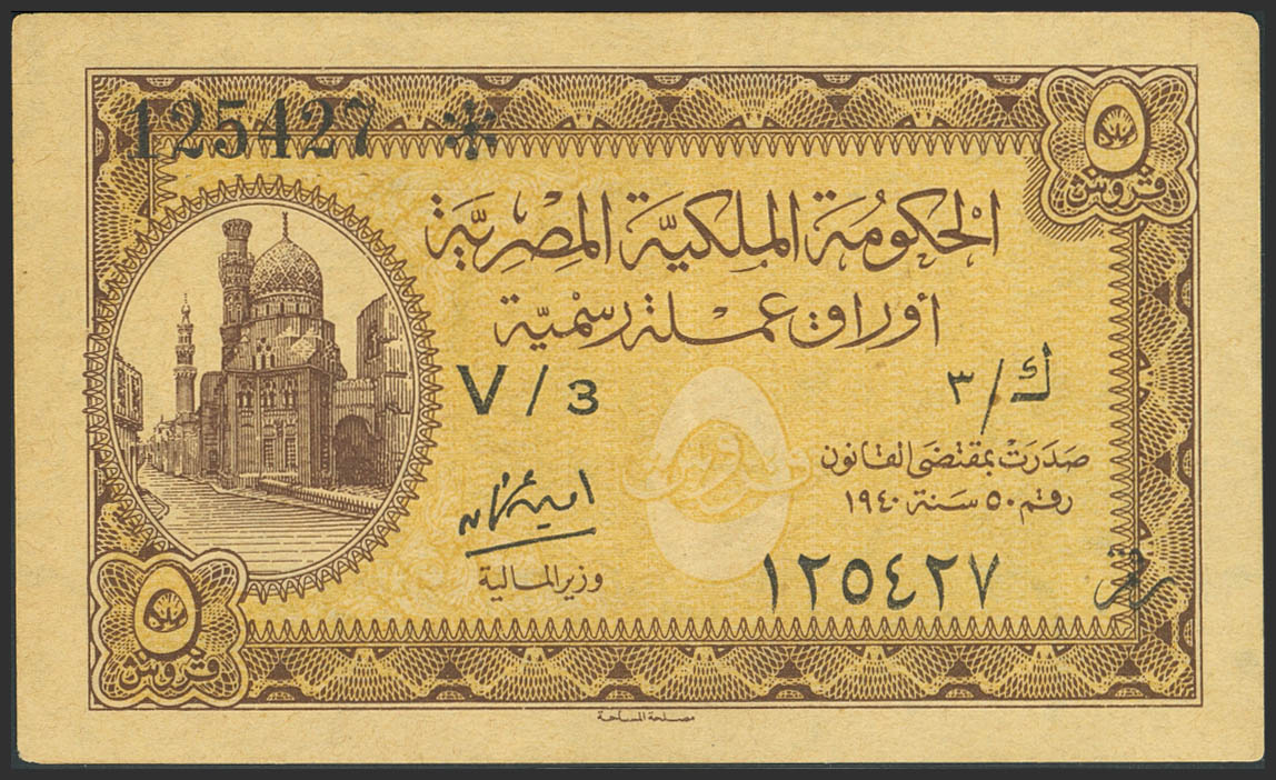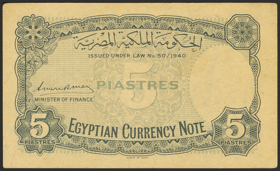 EGYPT. 5 Piastres. 1940. Royal Government. Signature of Amin Osman. (Pick: 164b). More than Extremely Fine.