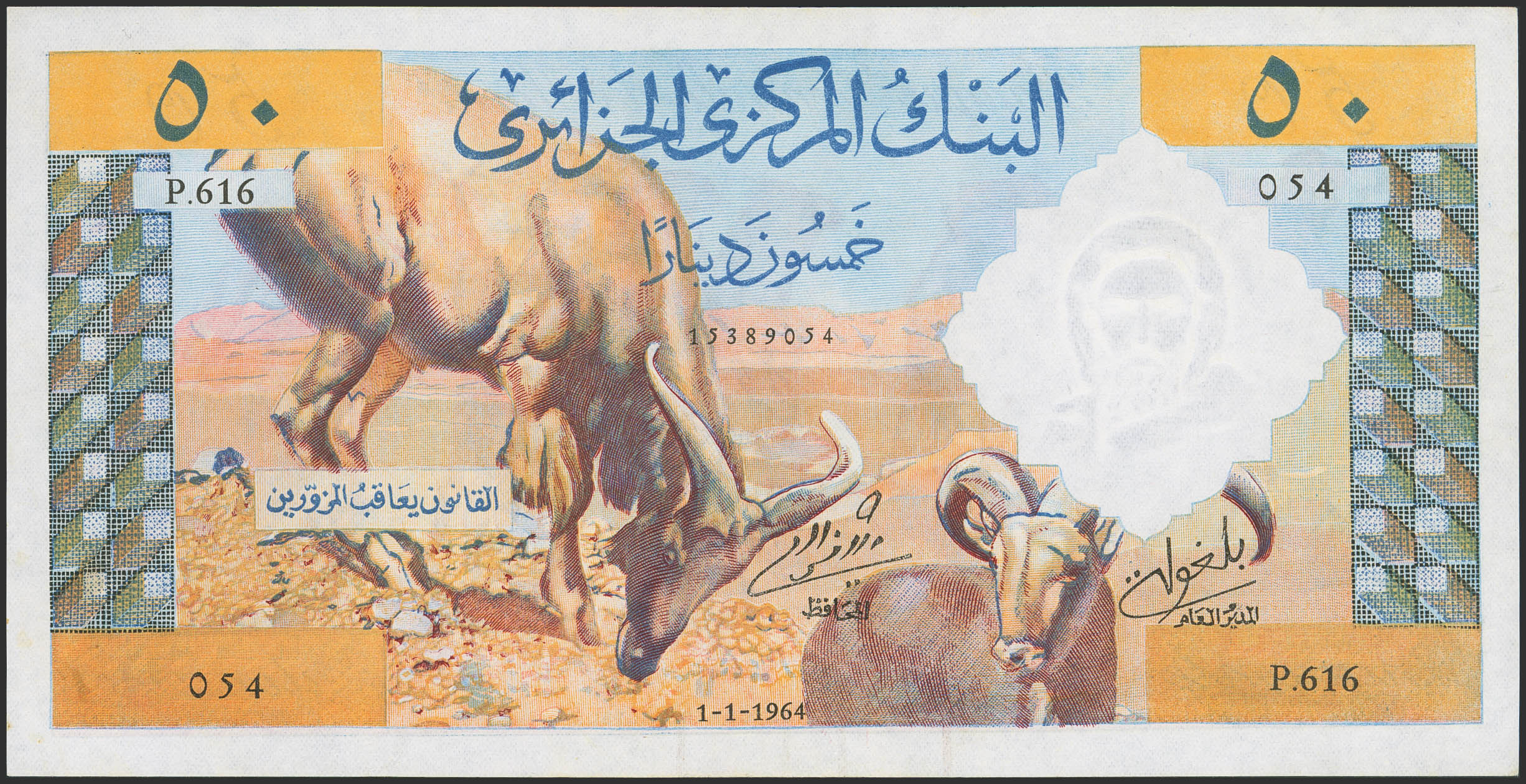 ALGERIA. 50 Dinars. 1 January 1964. Banque Centrale. (Pick: 124a). Corner folded. Less than Uncirculated.