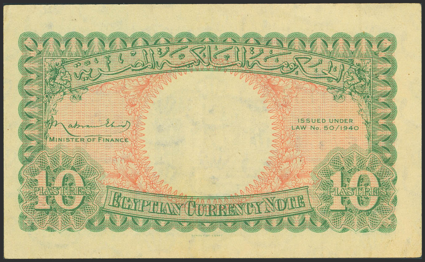 EGYPT. 10 Piastres. 1940. Royal Government. (Pick: 167b). More than Very Fine.