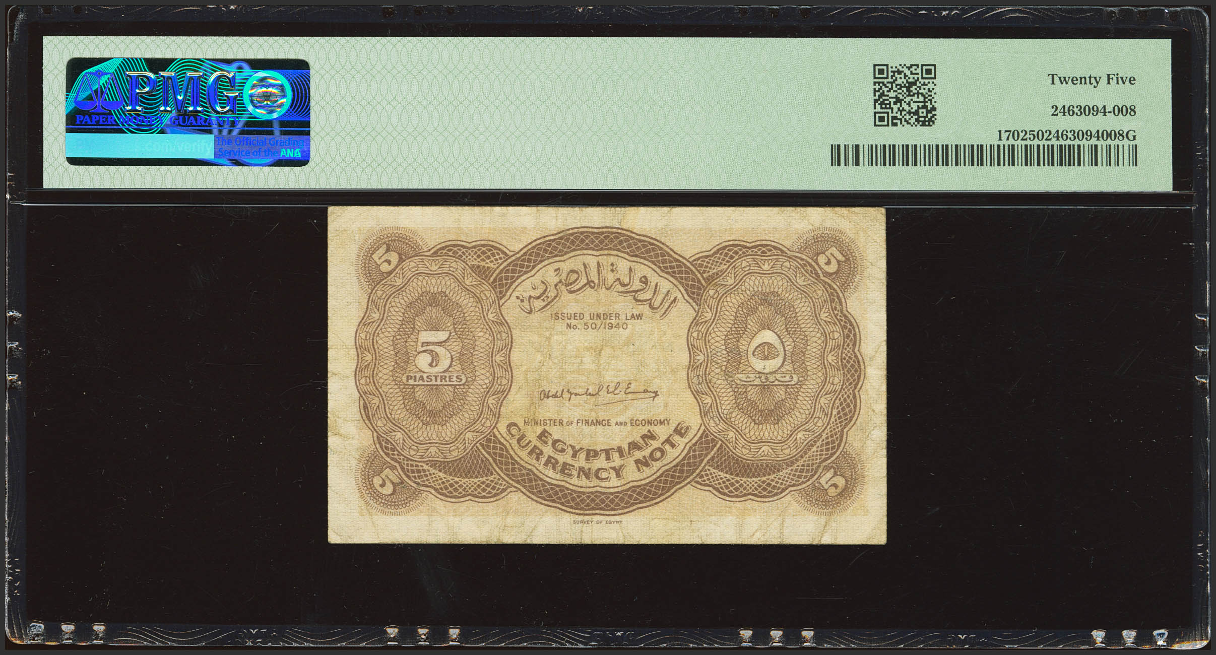 EGYPT. 5 Piastres. 1940. Egyptian State Currency Note. (Pick: 170). PMG25.