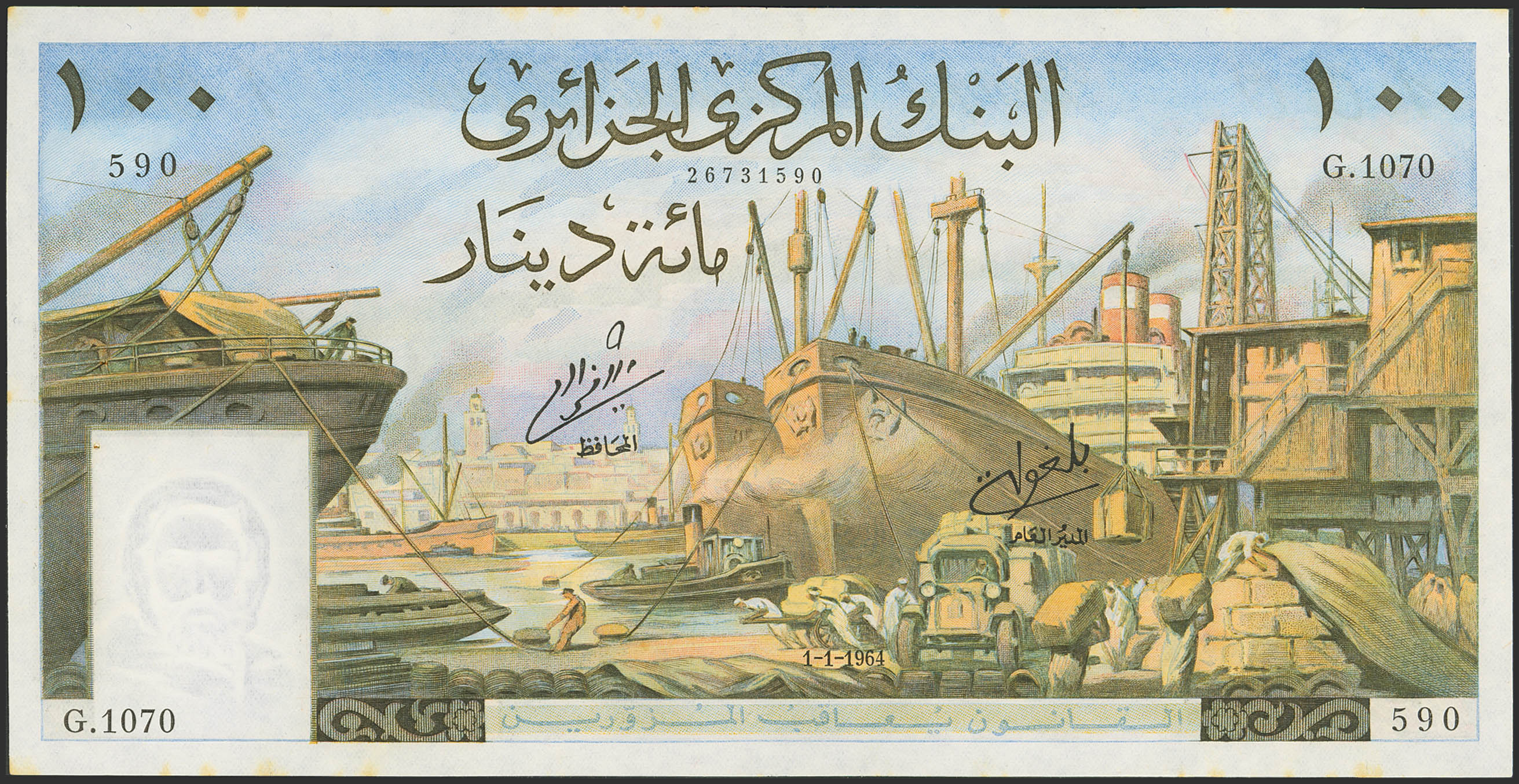ALGERIA. 100 Dinars. 1 January 1964. Banque Centrale. (Pick: 125b). Almost Uncirculated.