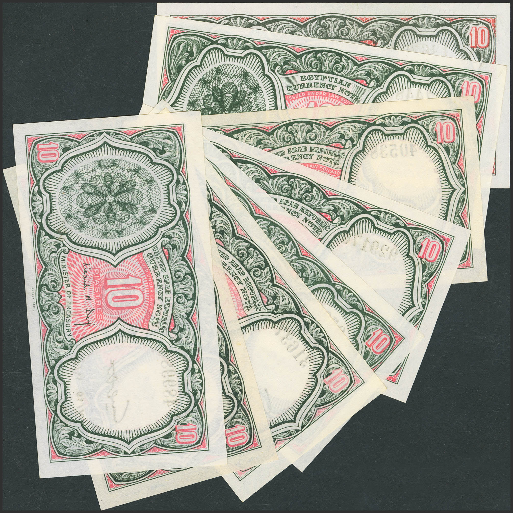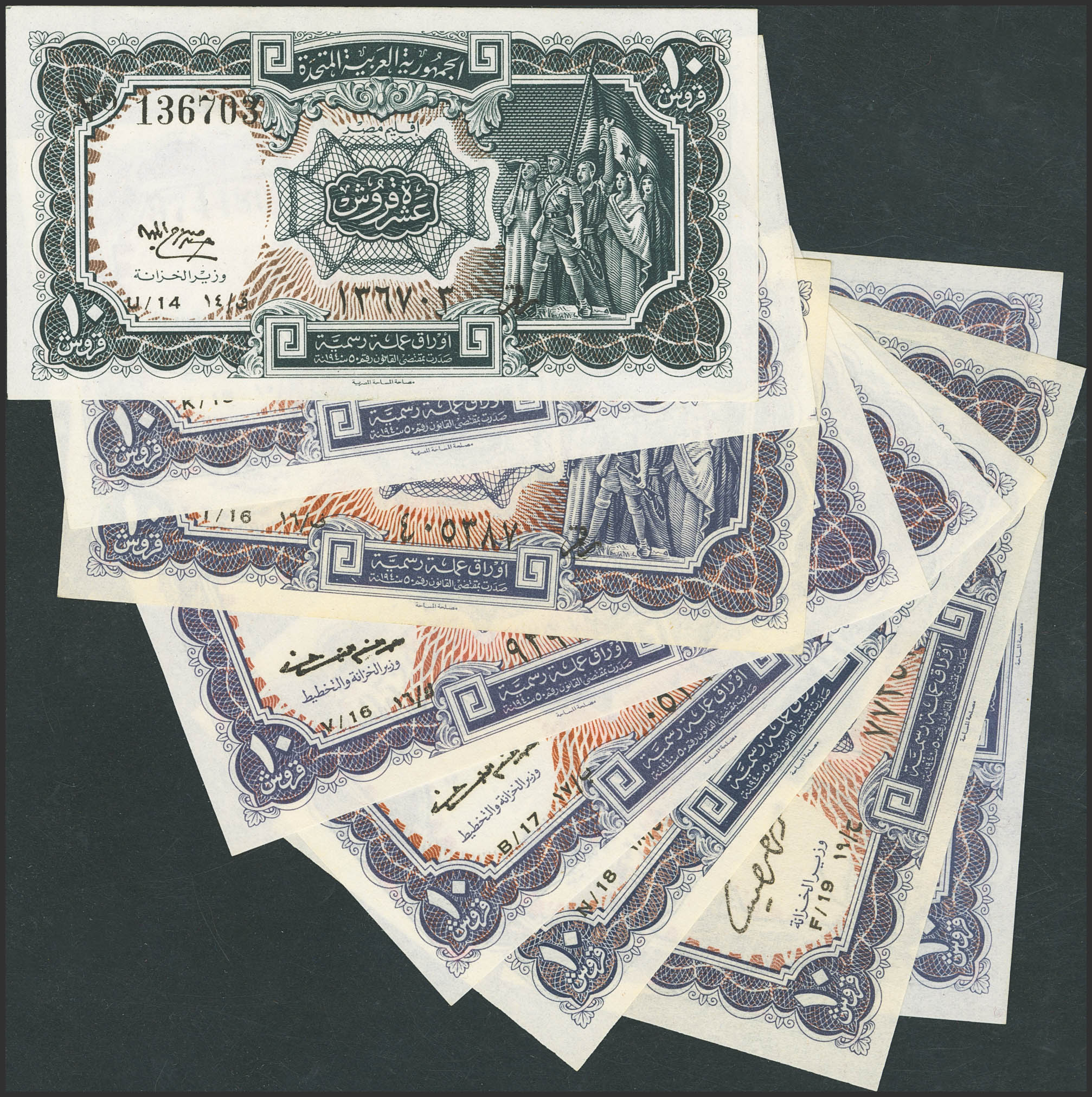 EGYPT. Lot of 8 notes of 10 Piastres. (1958ca). United Arab Republic. (Pick: 177, 181). More than Extremely Fine (1) to Uncirculated (7).